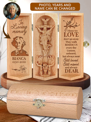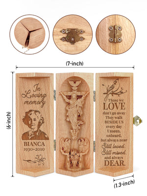 In Loving Memory Custom Photo Memorial Openable Wooden Cylinder Sculpture of Jesus Christ, Christ Decor
