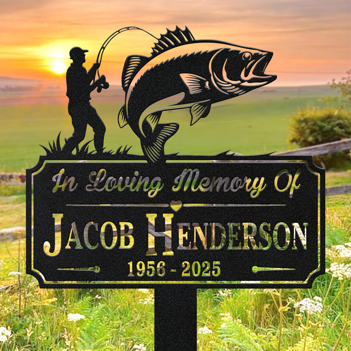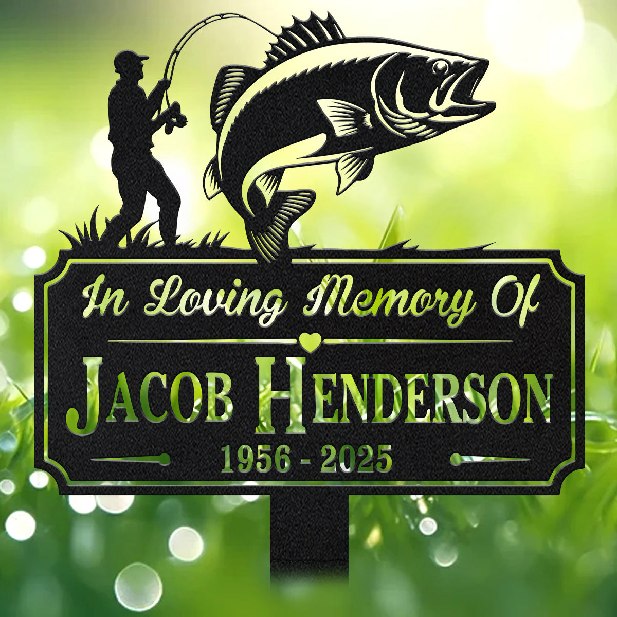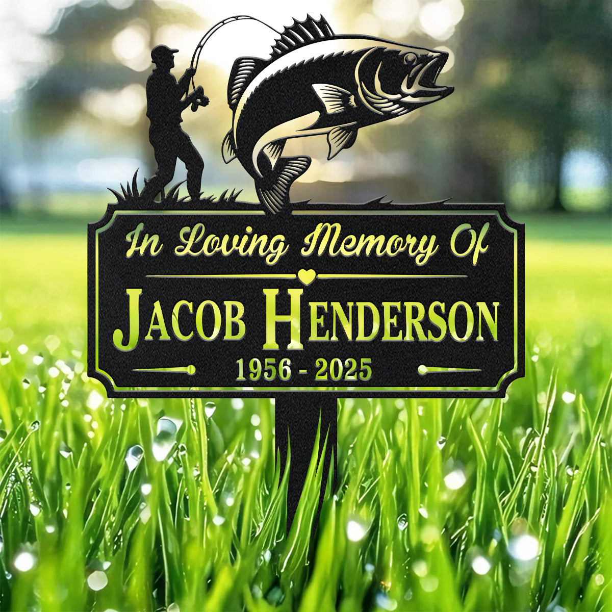 In Loving Memory Sign, Fishing Man Metal Stake, Custom Laser Cut Metal Signs, Memorial Plaque