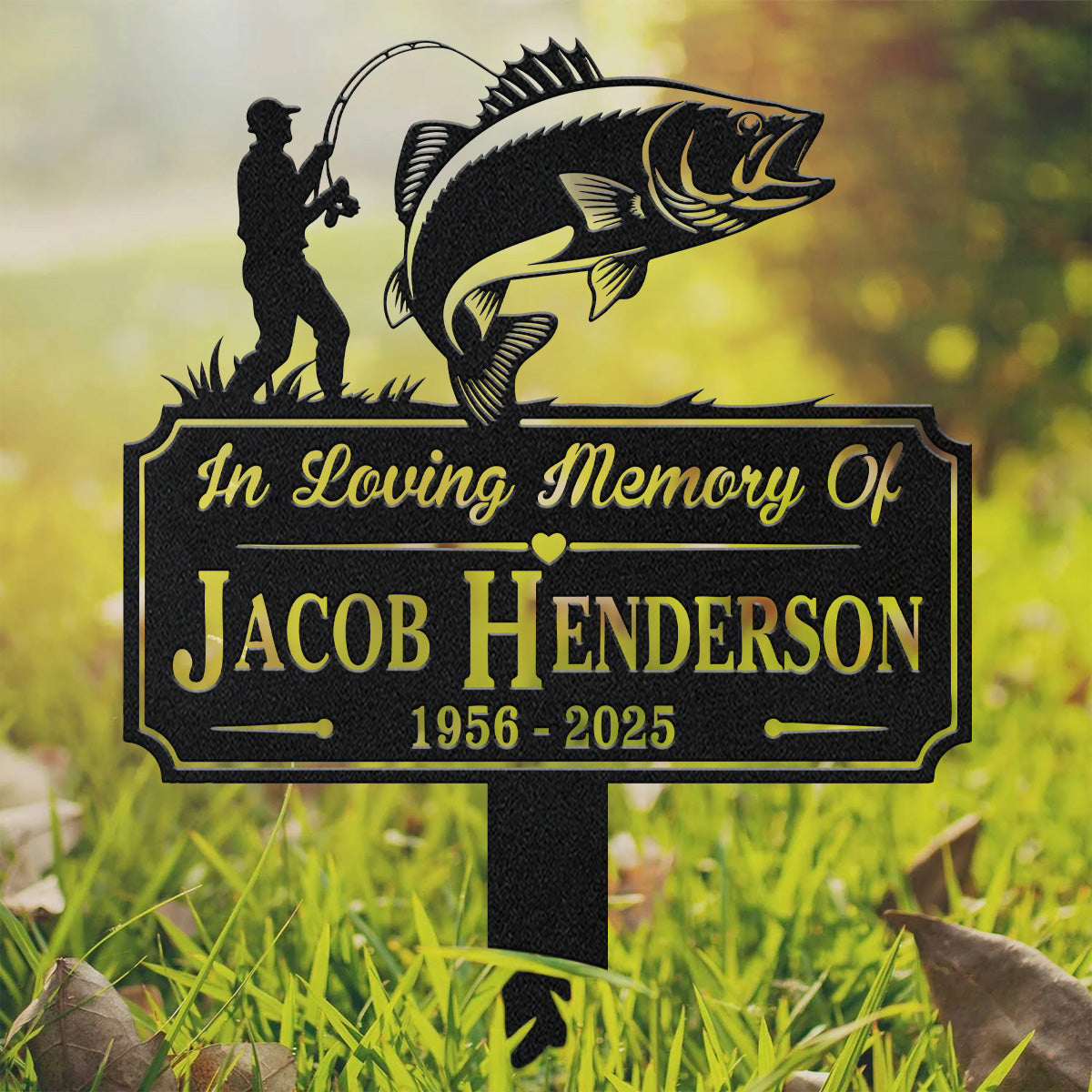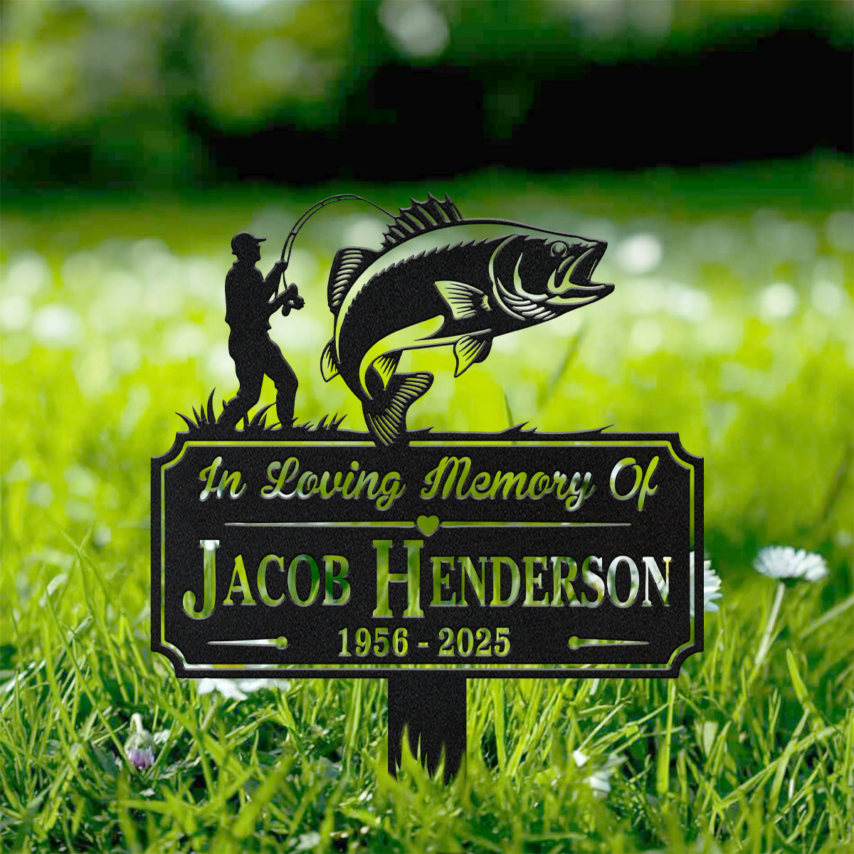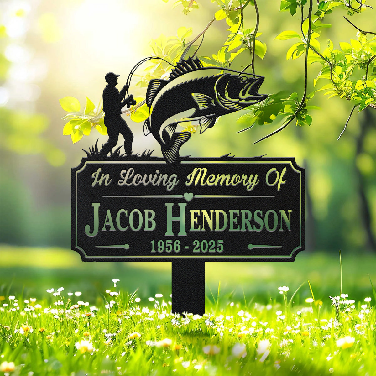 In Loving Memory Sign, Fishing Man Metal Stake, Custom Laser Cut Metal Signs, Memorial Plaque