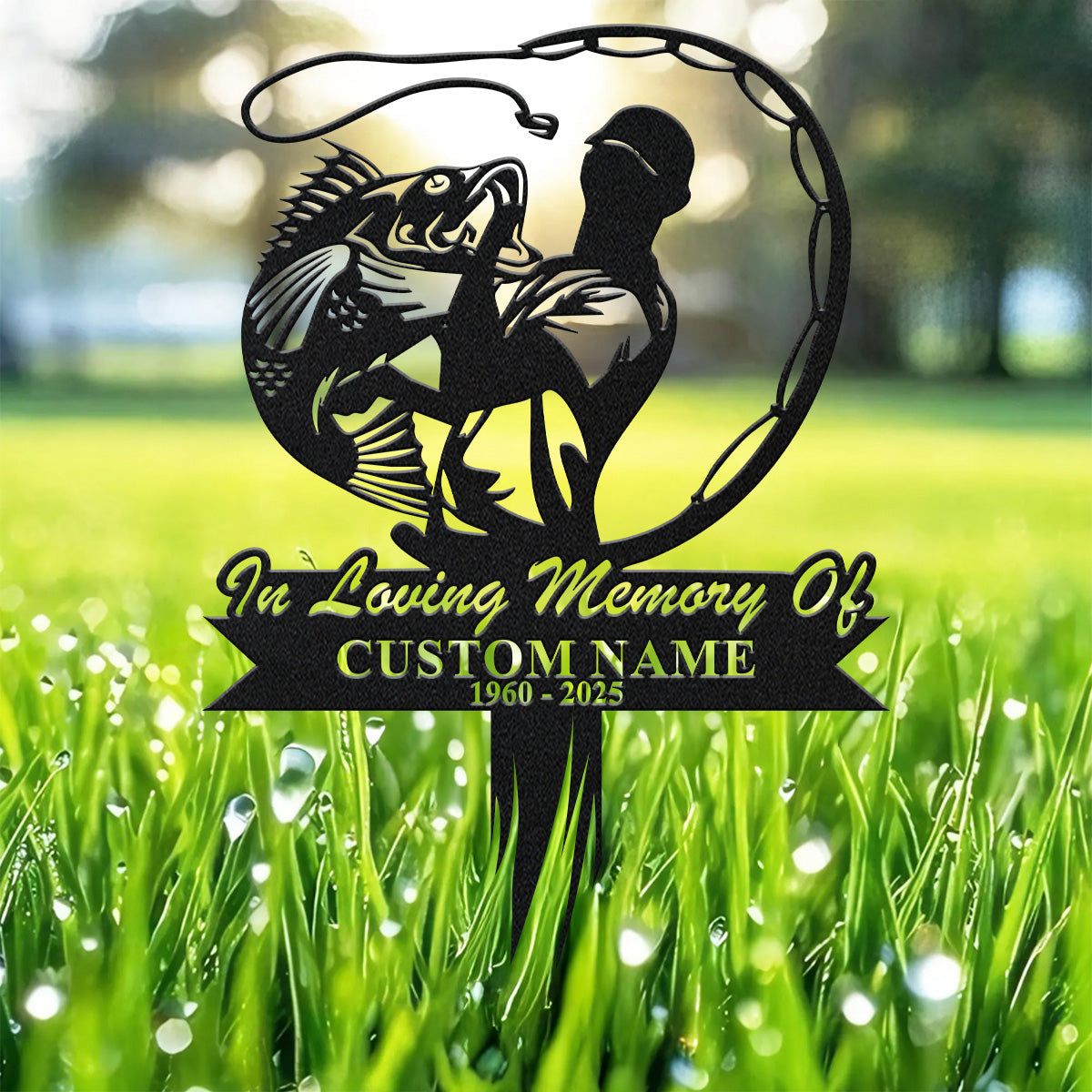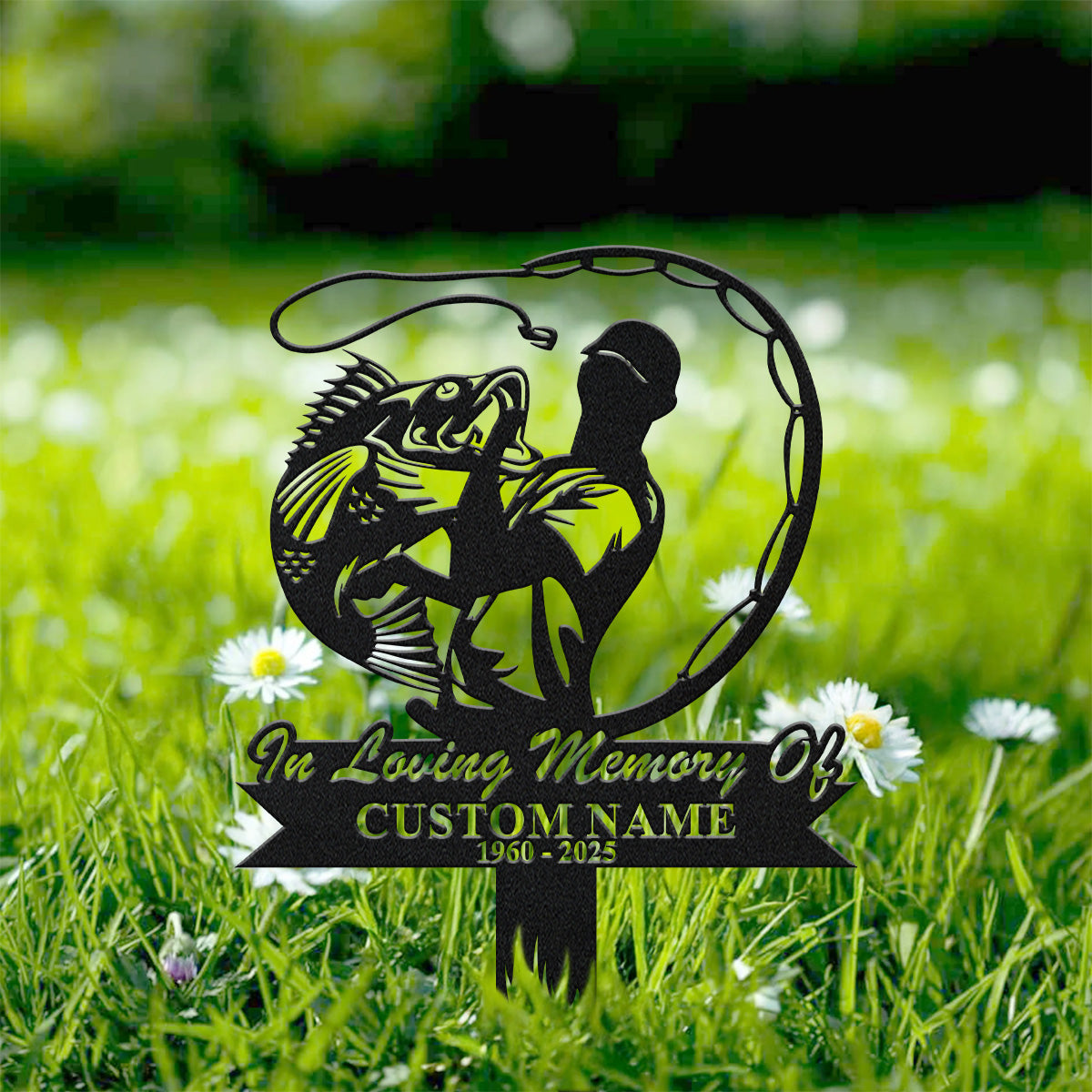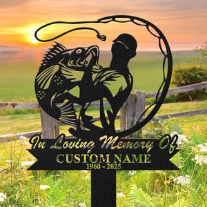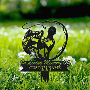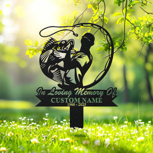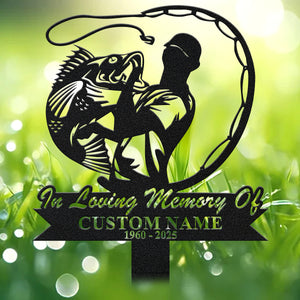 In Loving Memory Sign, Metal Fisherman Memorial Garden Stake, Custom Laser Cut Metal Signs, Memorial Plaque