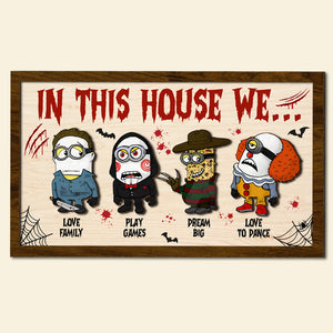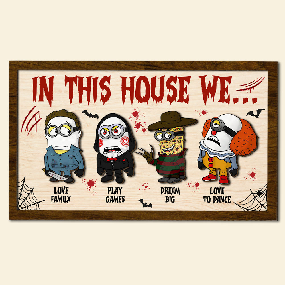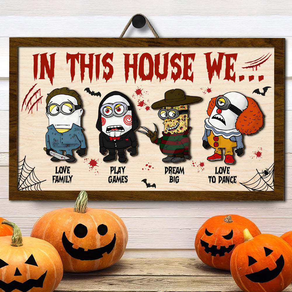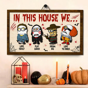 In This House We 2 Layered Horror Halloween Wood Sign, Horror Movie Gifts
