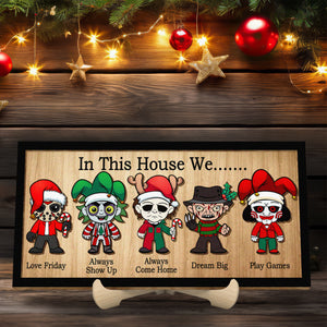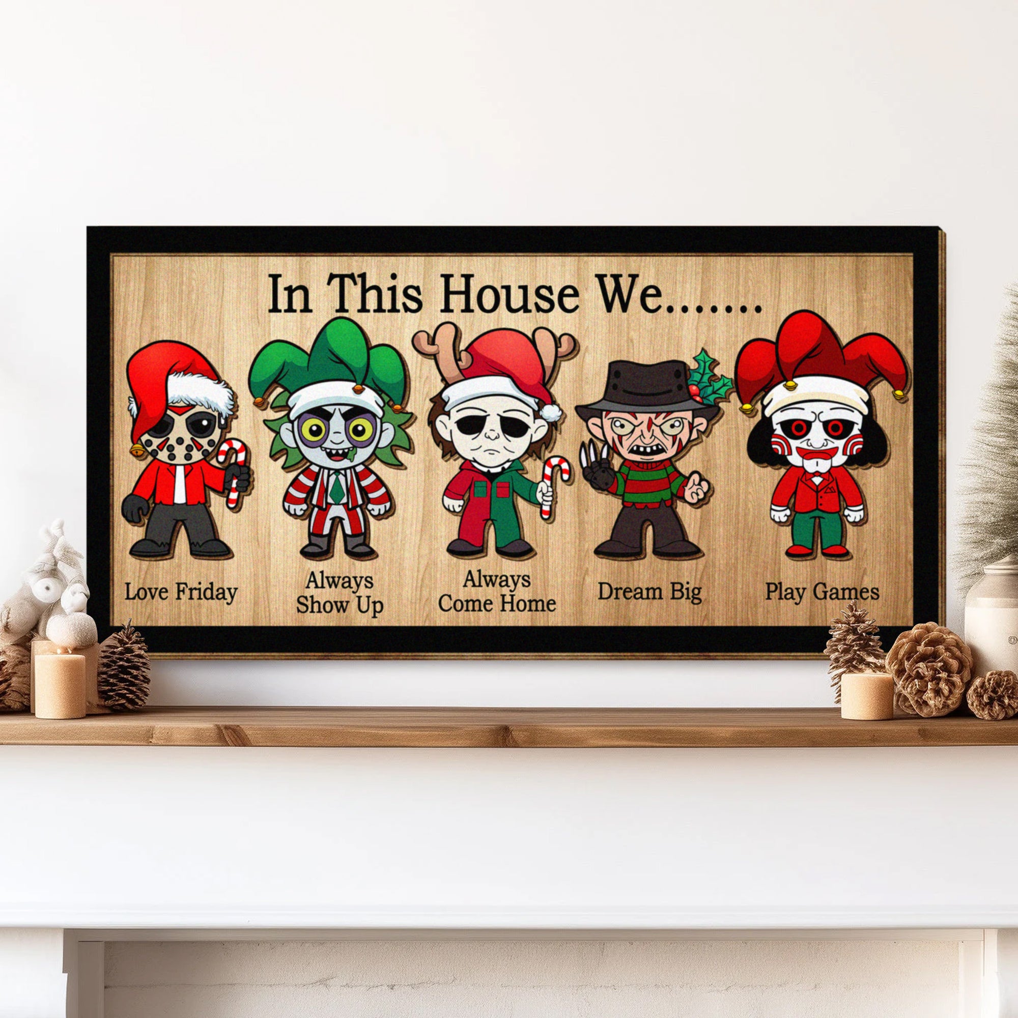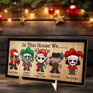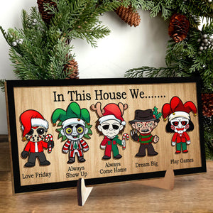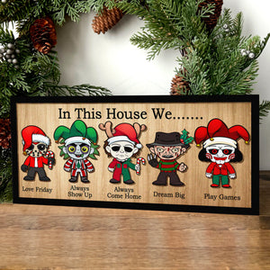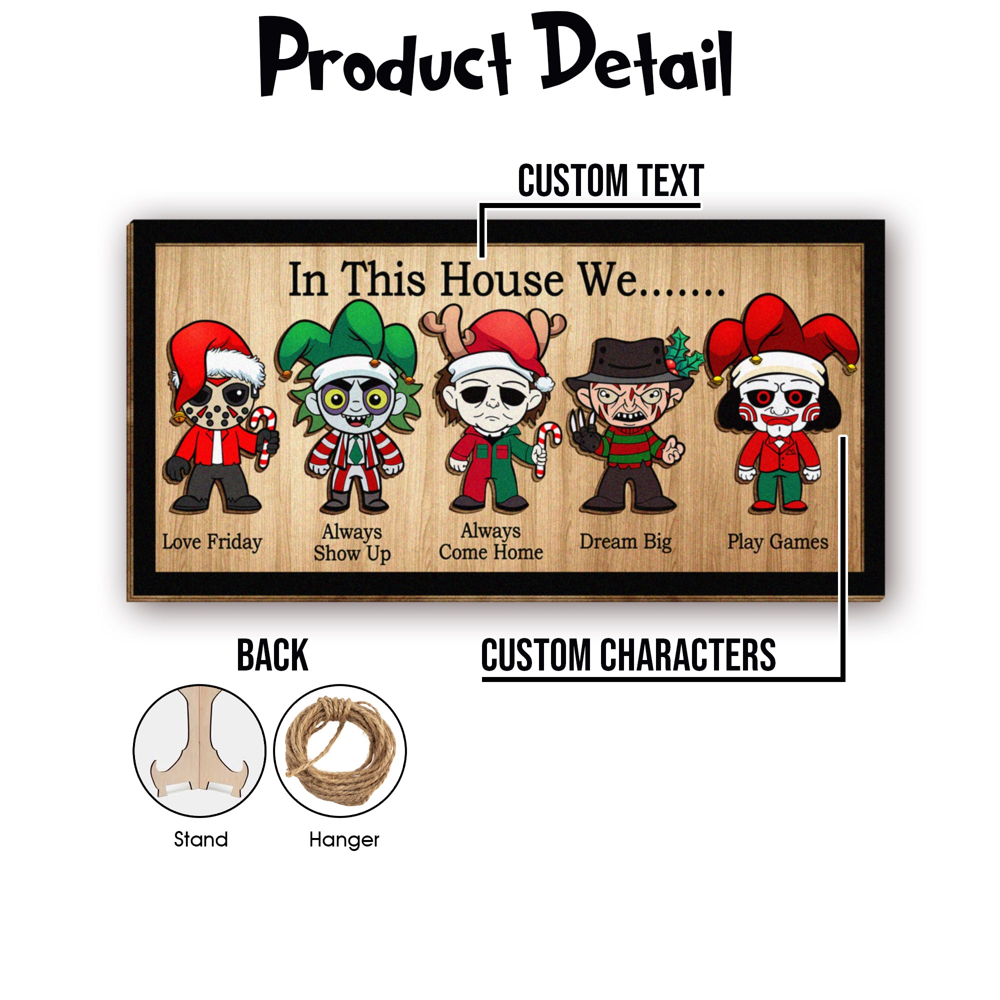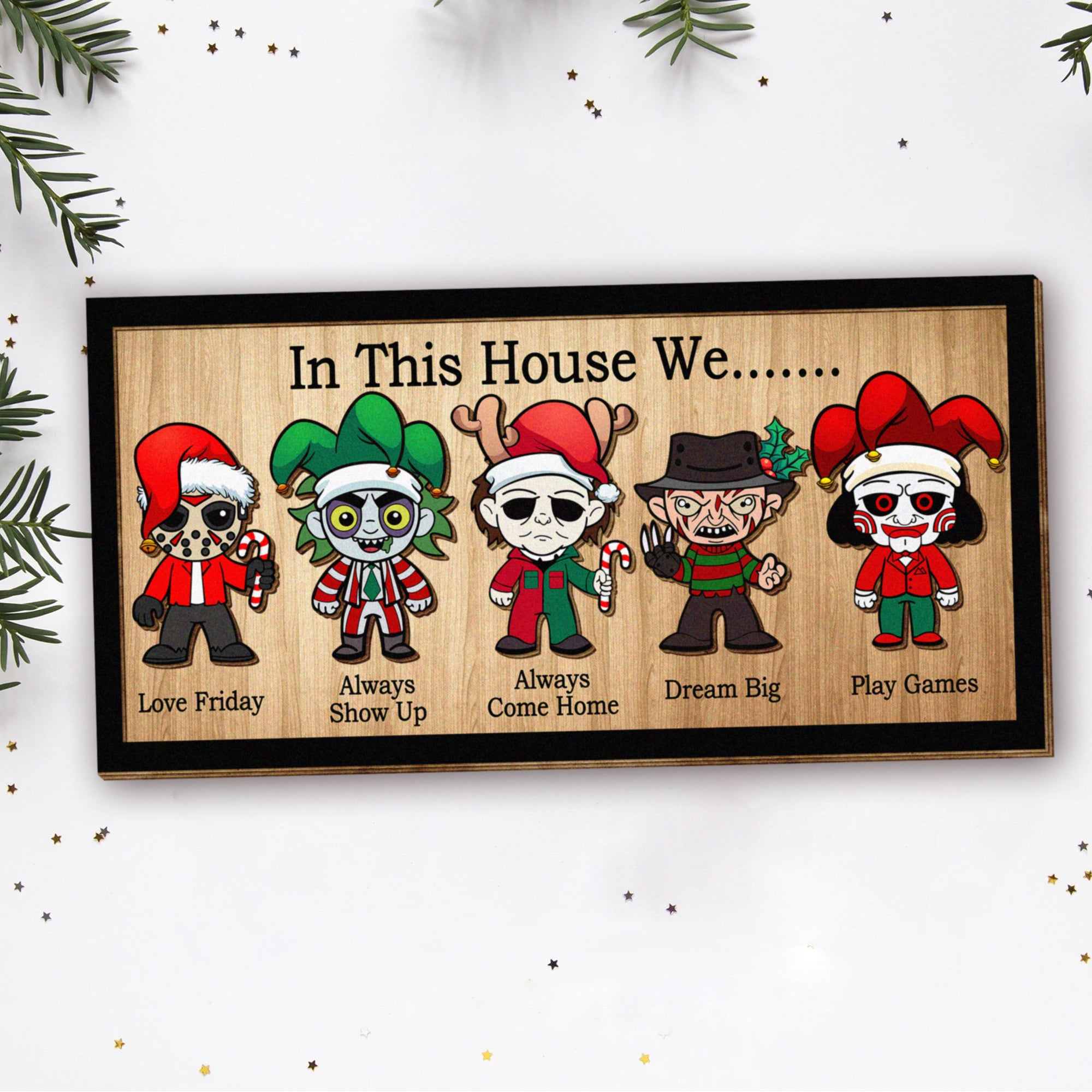 In This House We Christmas Wood Sign, Horror Movie Characters, Christmas Decor