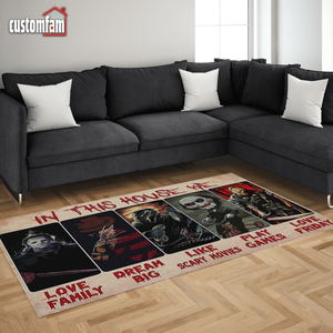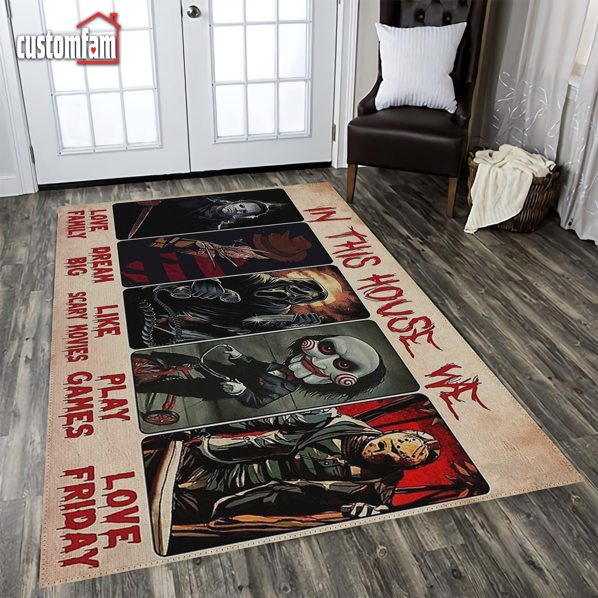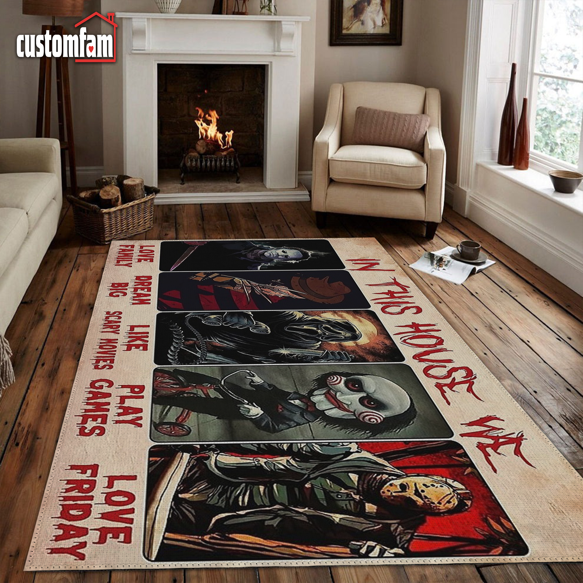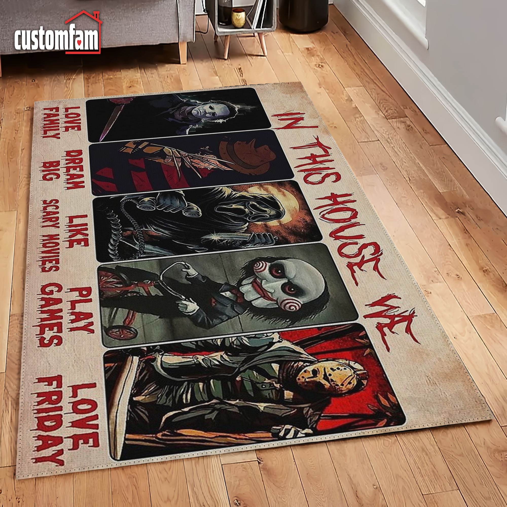 In This House We, Horror Movie Rugs, Halloween Characters Movies, Halloween Decorations, Slasher Rug