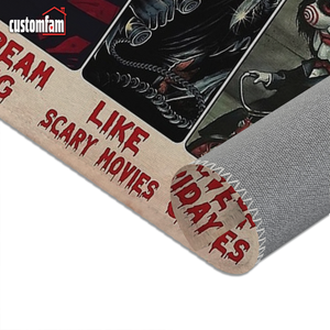 Transform your living space into a chilling tribute to your favorite horror films with our Horror Themed Area Rug. Perfect for Halloween decor and horror movie fans, this rug adds a spooky and stylish touch to any room.