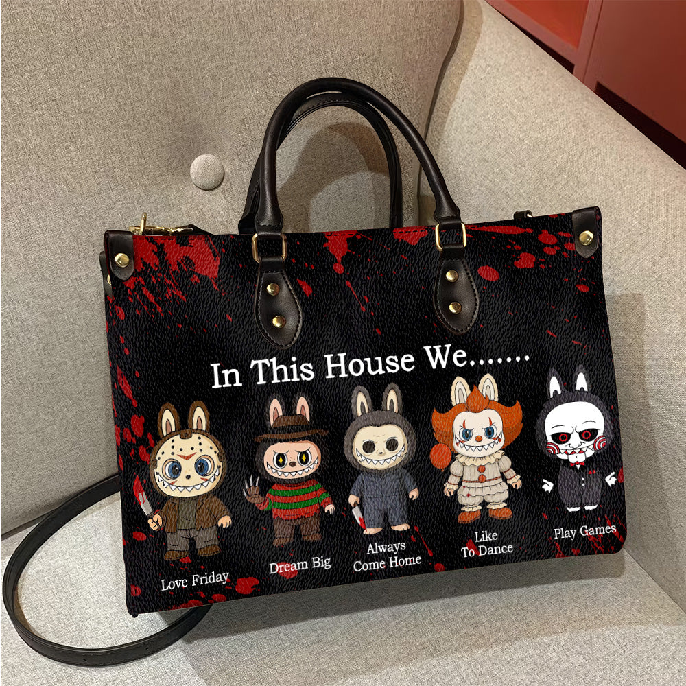 In This House We - Labubu Halloween Purse Handbag Set - Women Leather Bag - Leather Bags Shoulder