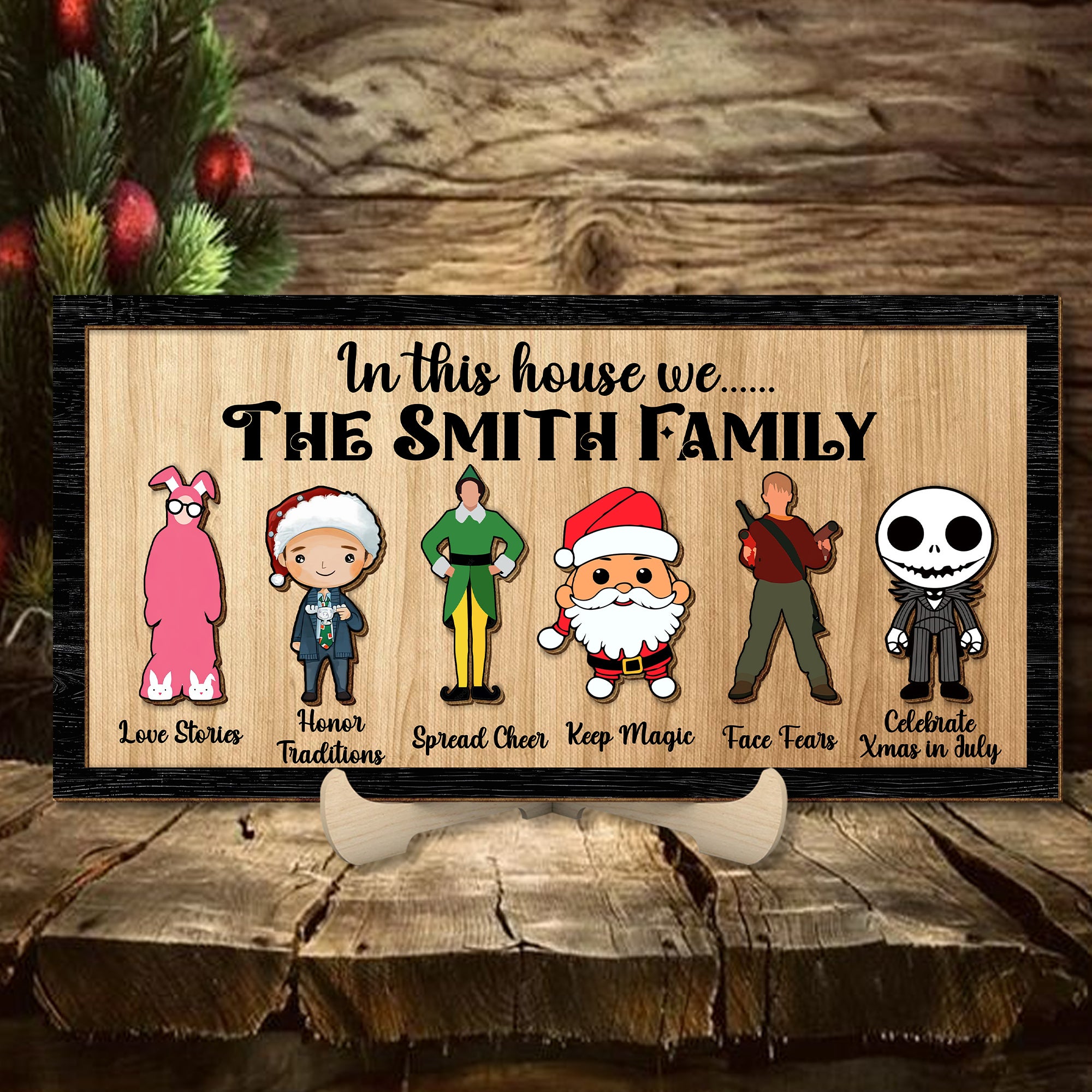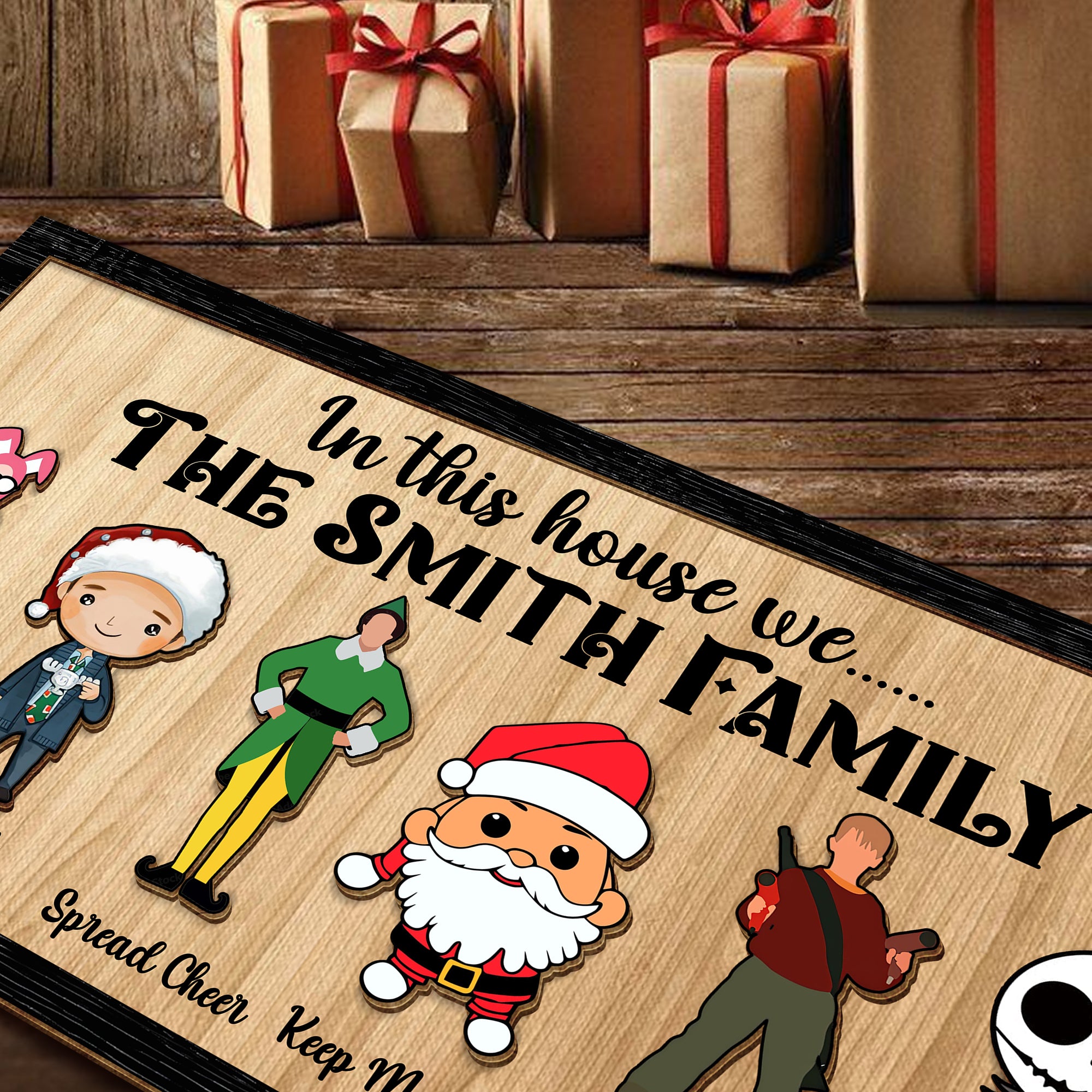 Celebrate the festive season with our Personalized "In This House We" Family Name Wood Sign. This charming sign features a selection of beloved holiday characters, each representing a special aspect of the season, and can be customized with your family name and choice of characters. It’s the perfect addition to your holiday decor or a thoughtful gift for loved ones.