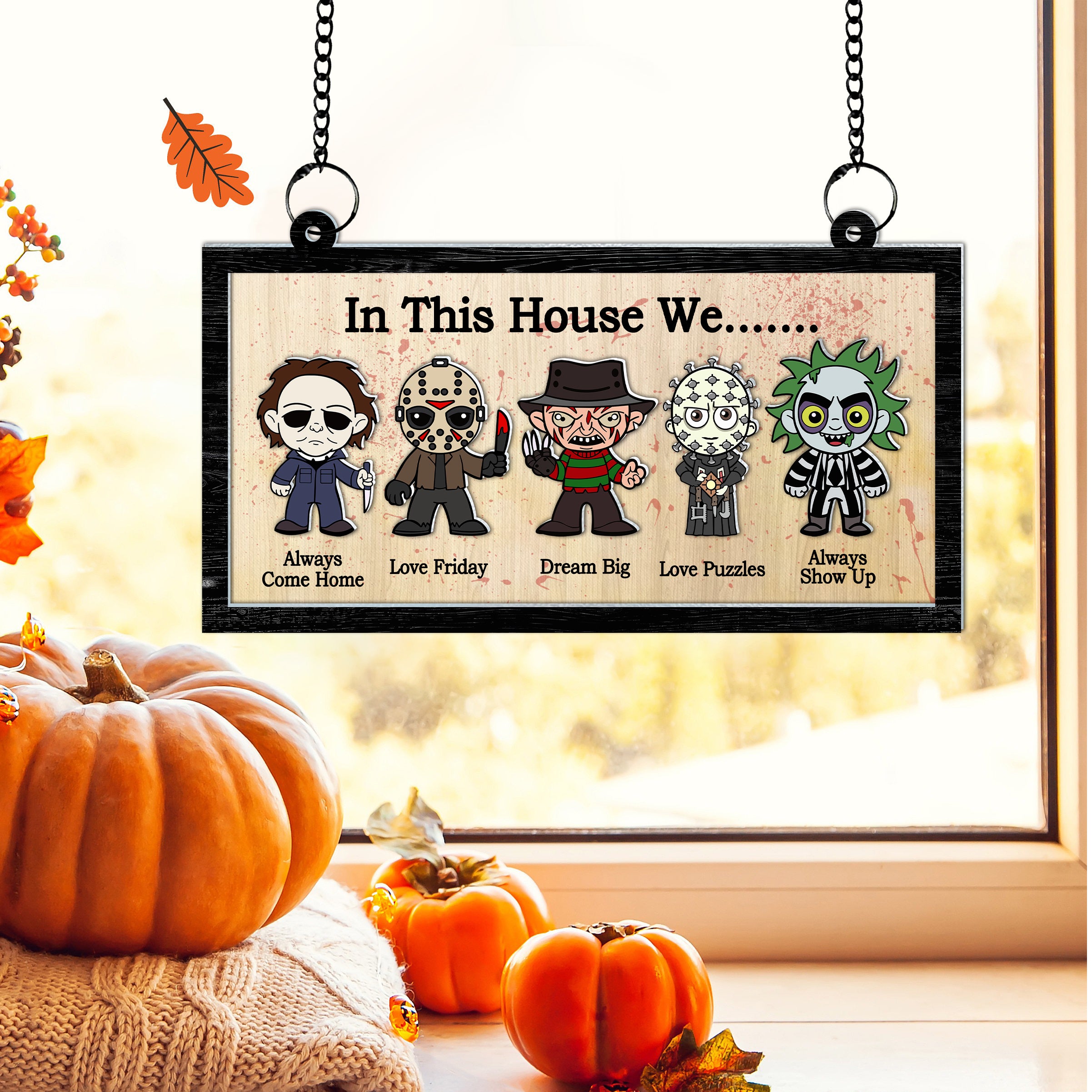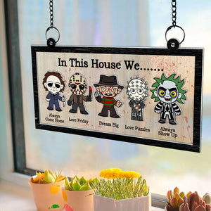 In This House We Personalized Halloween Suncatcher, Horror Movie Sign, Halloween Decor
