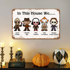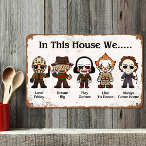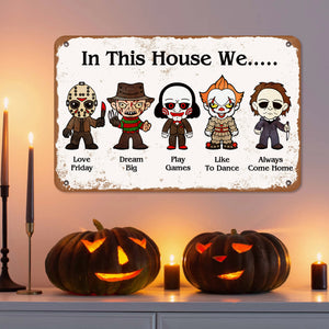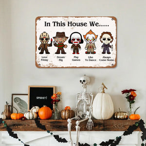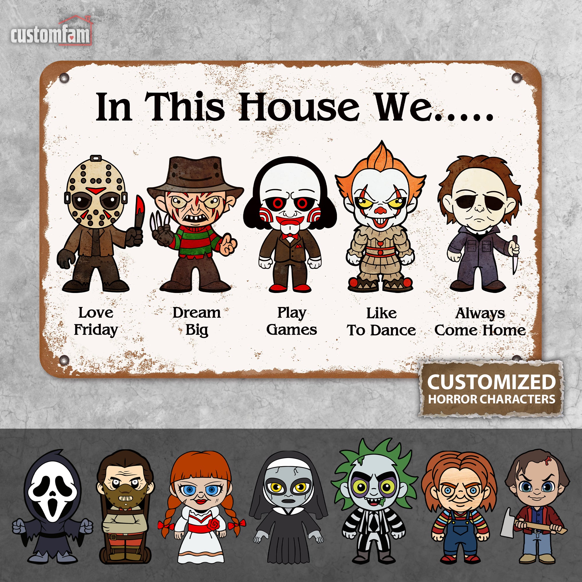 In This House We Personalized Horror Characters Metal Tin Sign, Vintage Halloween Decor