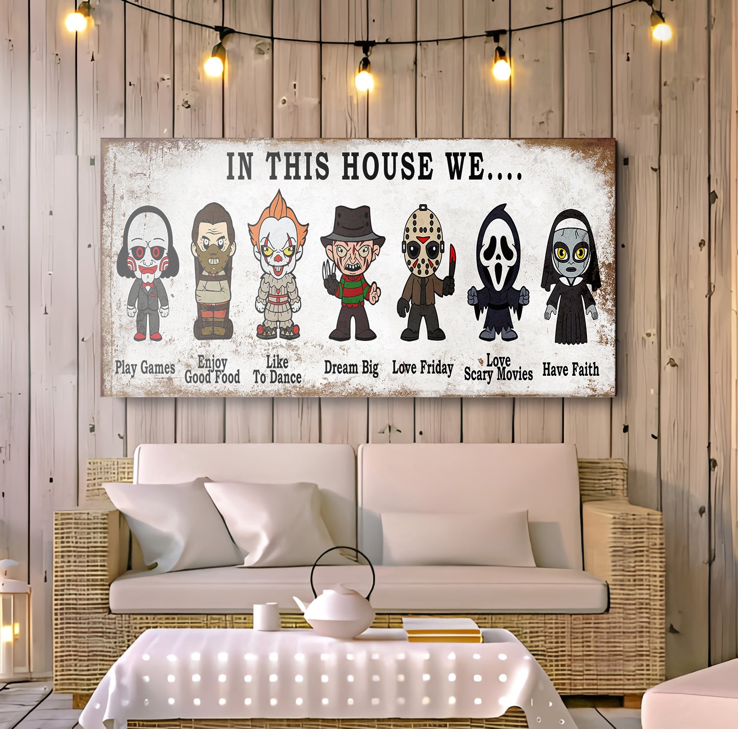 In This House We Horror Canvas, Horror Movies Sign, Halloween Decor