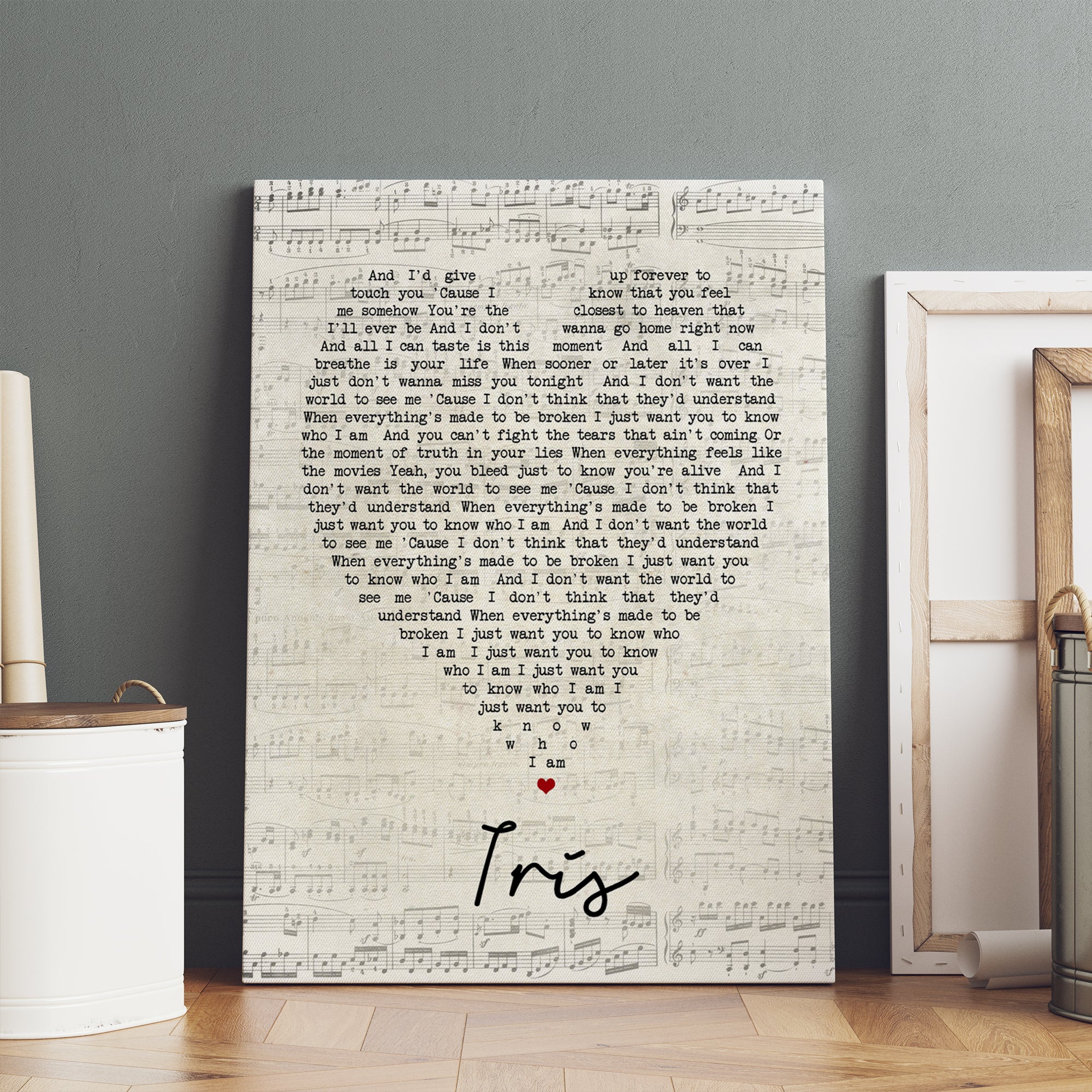 Iris Goo Goo Dolls Script Heart Song Lyric Art Print Canvas Print Frames