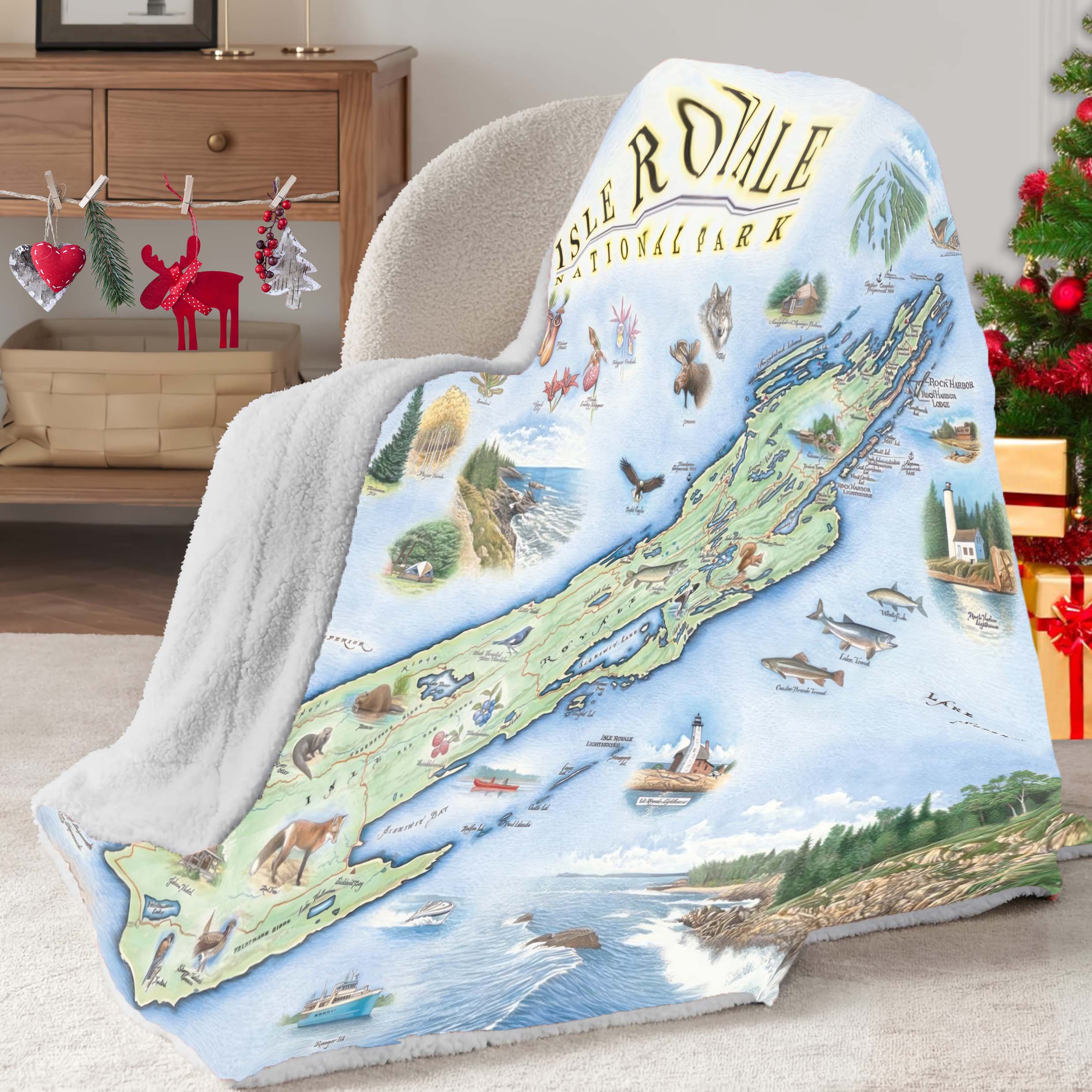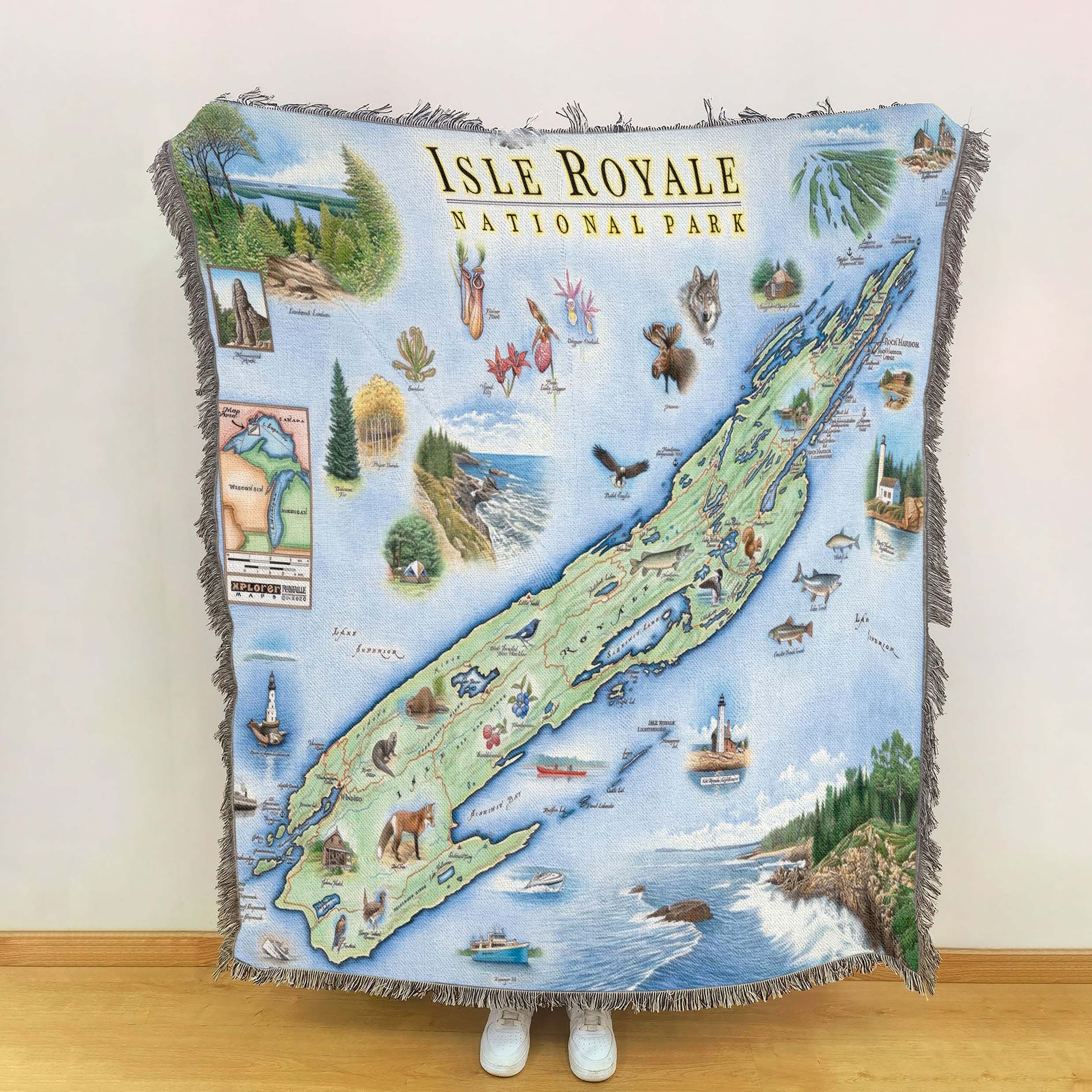 Isle Royale National Park Map Blanket, Gift For Travelers, Outdoor Gift