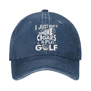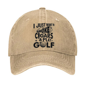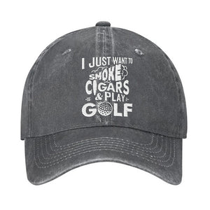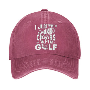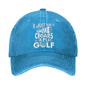 I Just Want To Smoke Cigars & Play Golf Embroidered Baseball Cap, Funny Gift For Dad