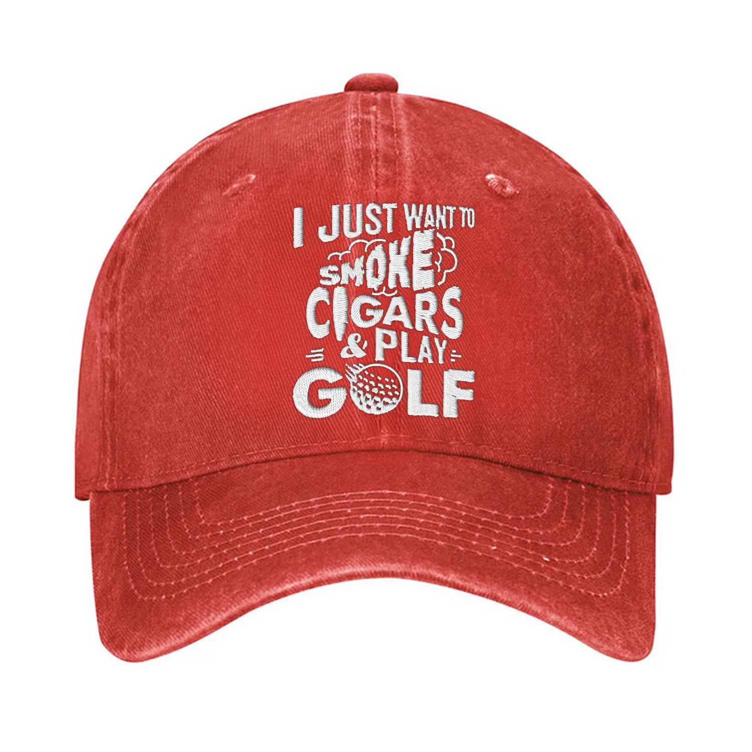 Add a bold touch of humor to your golf game with this hilarious embroidered cap! Featuring the cheeky phrase this cap "I Just Want To Smoke Cigars & Play Golf" is perfect for golfers who aren’t afraid to laugh at their own game.