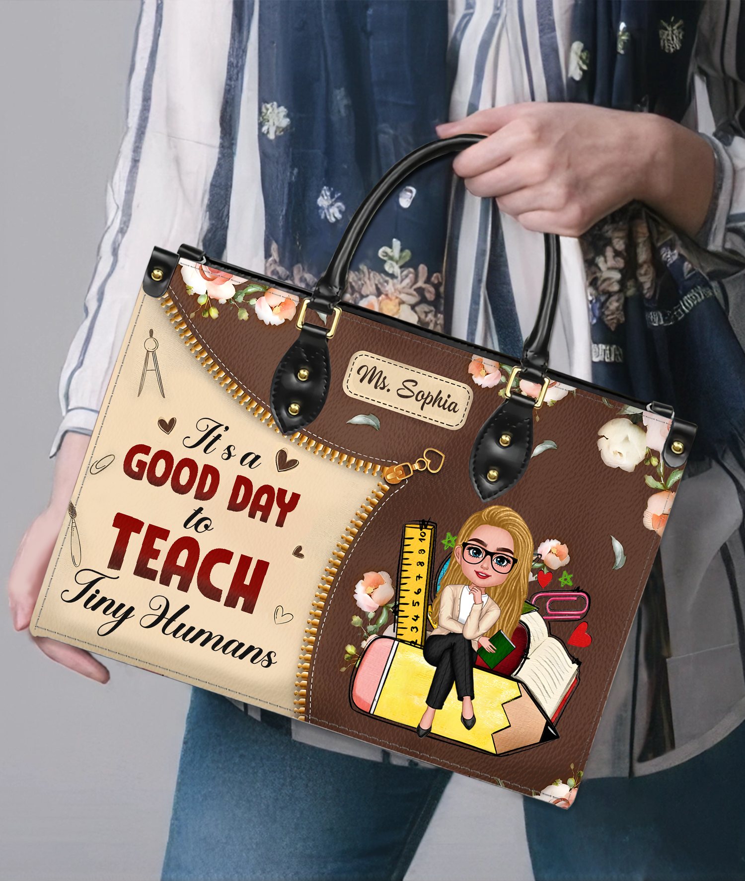 Stand out with a blend of cute and fashion with our custom Teacher Hand Bag