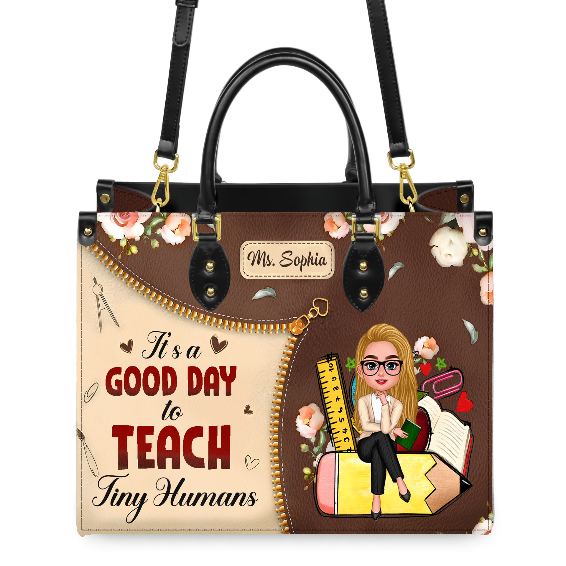 It's A Good Day To Teach Tiny Humans Personalized Elementary Teacher Leather Handbag, Teacher Appreciation Gifts