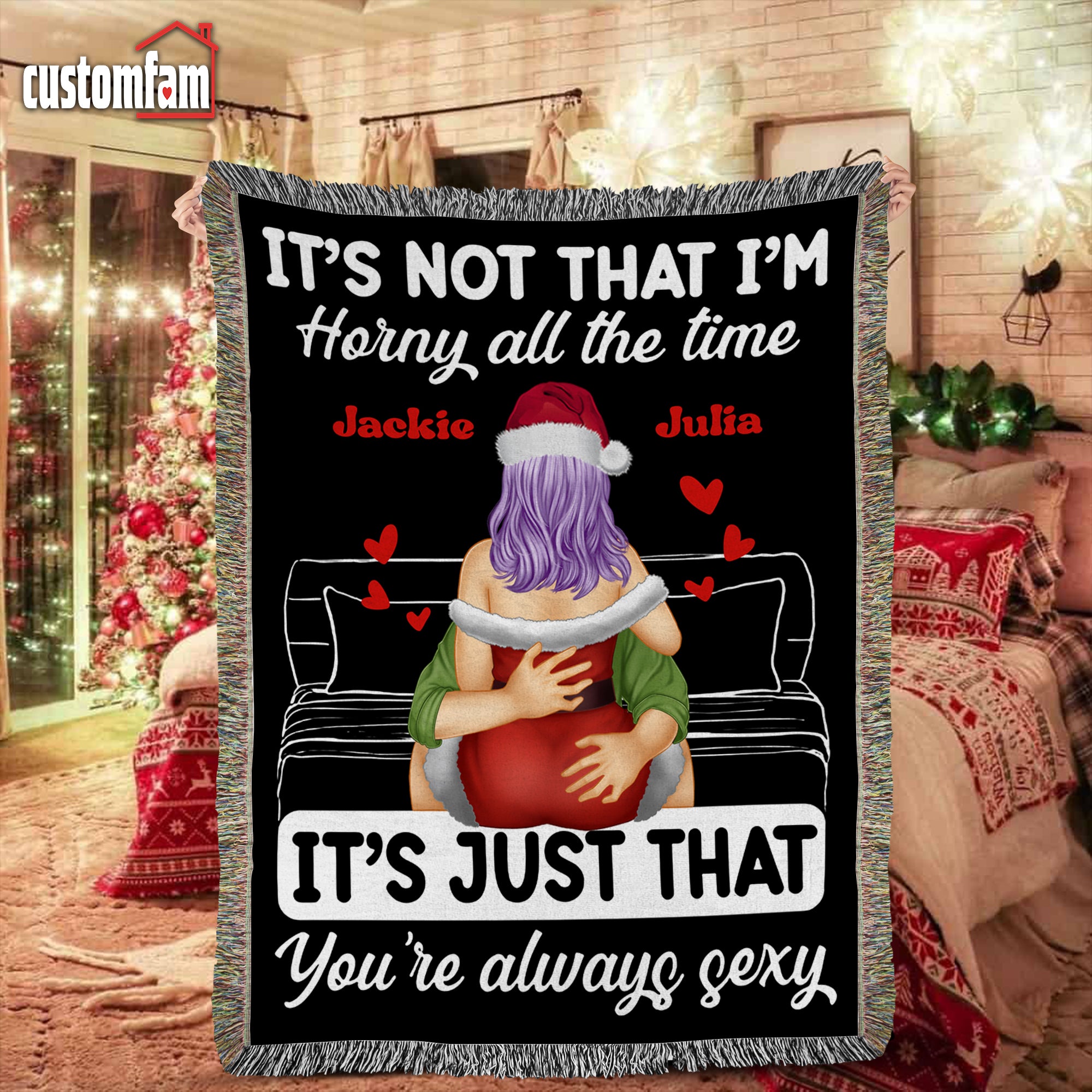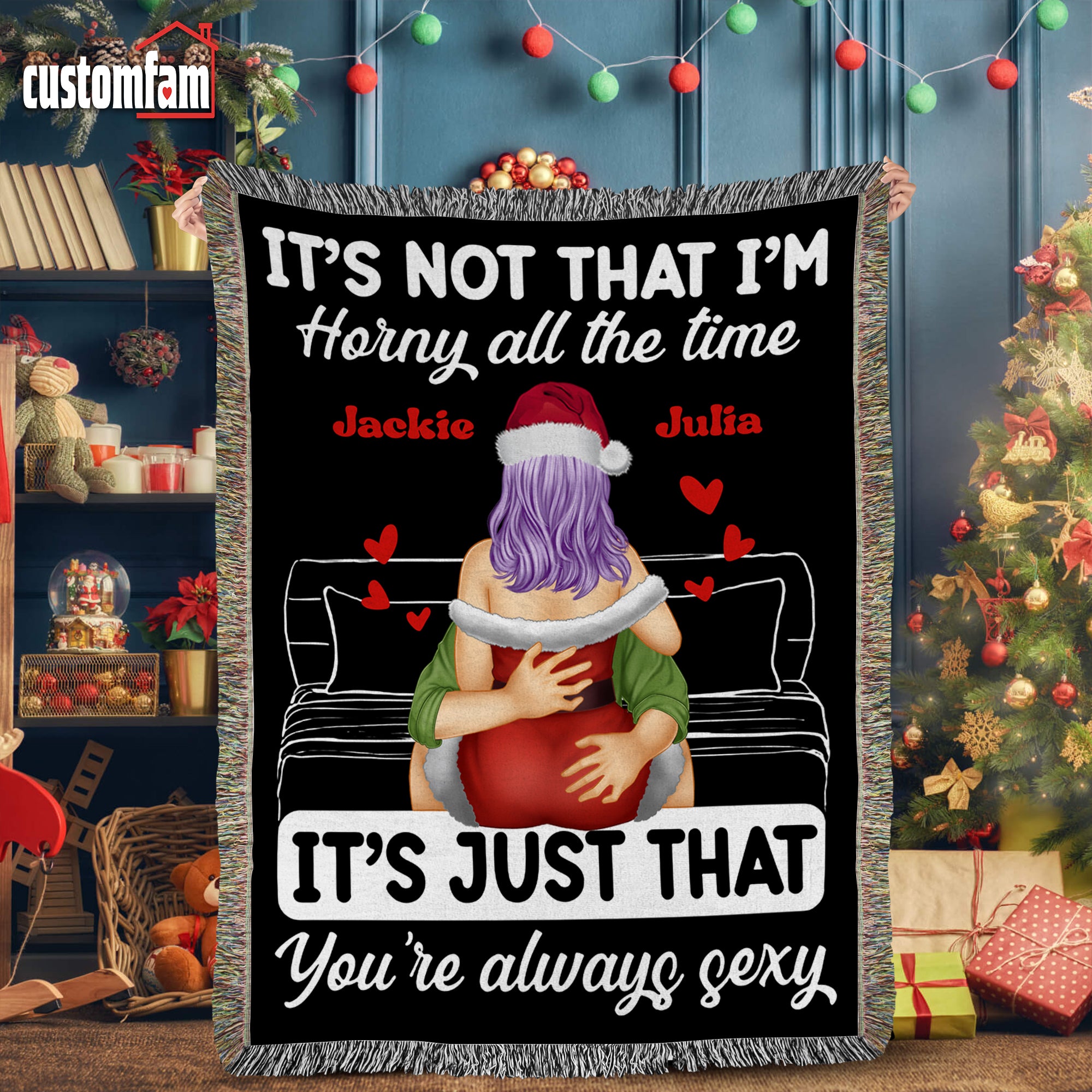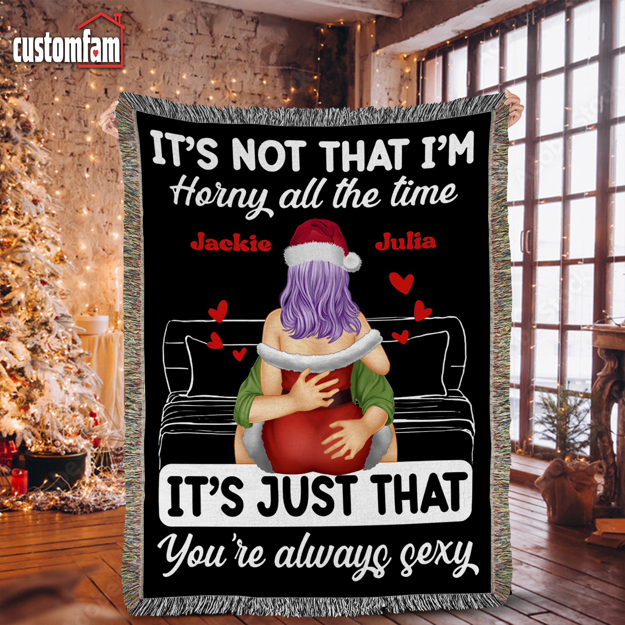 It's Not That I'm H!rny All The Time Personalized Naughty Couple Woven Blanket, Gift For Couples