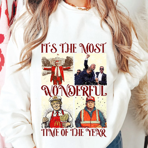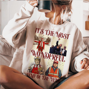 Celebrate the season with humor and patriotism in the Trump 2024 "It's The Most Wonderful Time of The Year" Funny Sweatshirt! This festive and witty sweatshirt combines Christmas cheer with a bold political message, making it the perfect way for Trump supporters to show their love for the holiday season while backing the 2024 campaign. Featuring the catchy slogan "It's the Most Wonderful Time of the Year" with a fun design, it adds a lighthearted twist to your winter wardrobe. Whether you're at a holiday party, a political gathering, or just enjoying a cozy day at home, this sweatshirt brings warmth, laughter, and festive spirit.