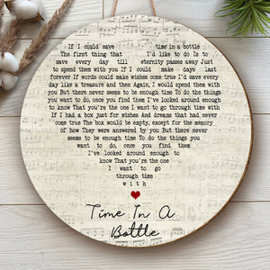 Jim Croce Time In A Bottle Script Heart Song Lyric Round Wood Sign, Wood Signs For Home
