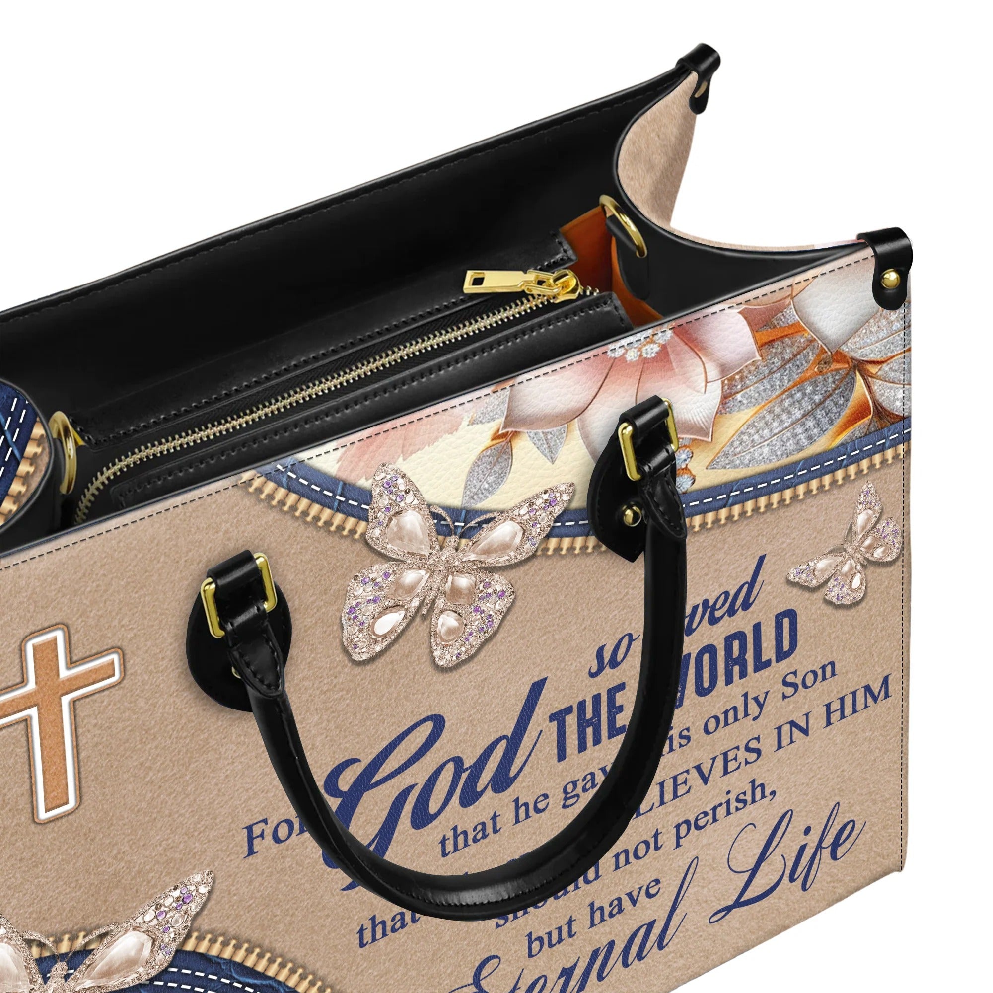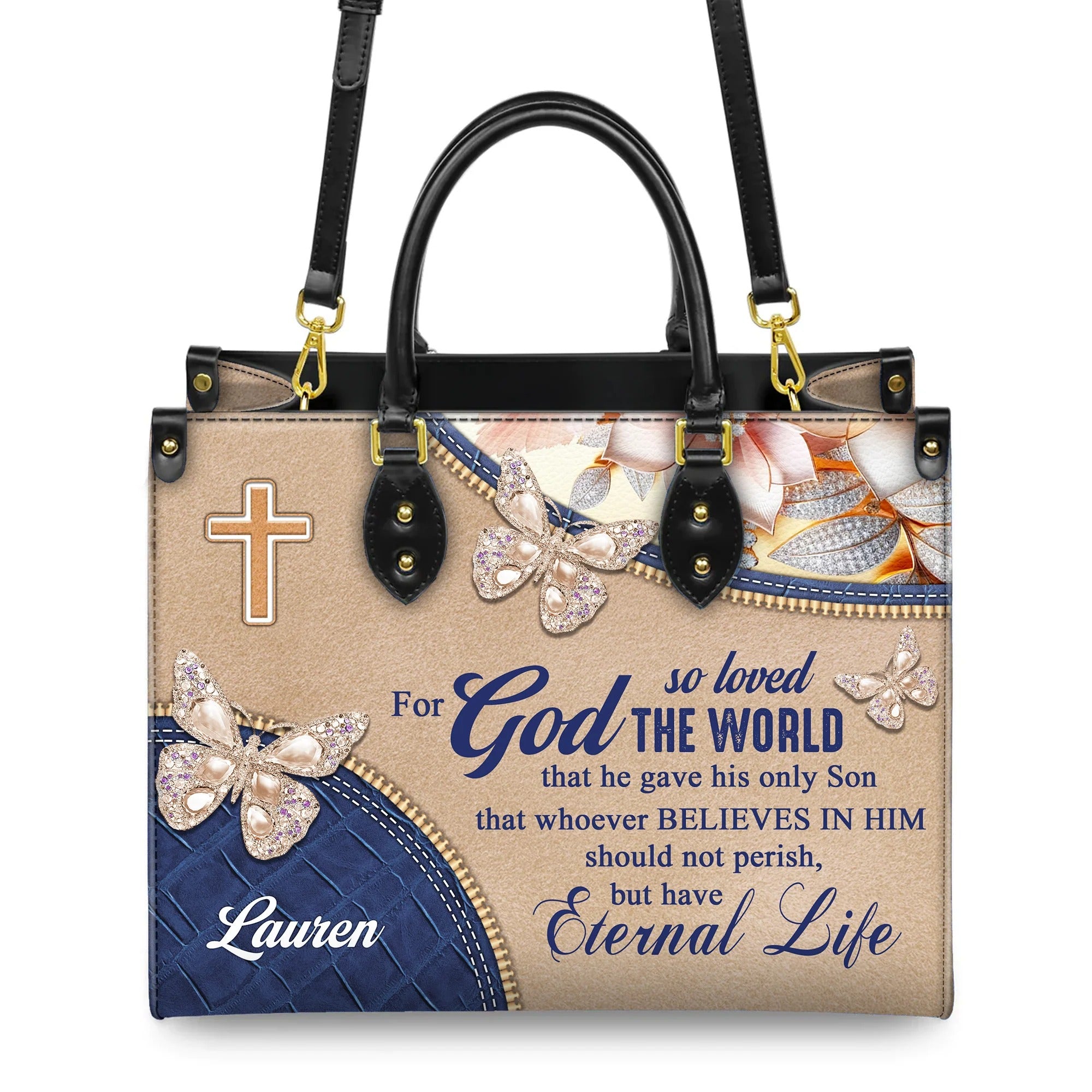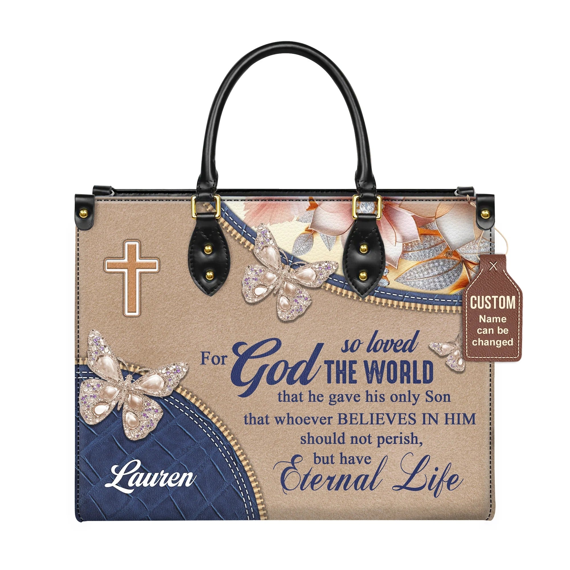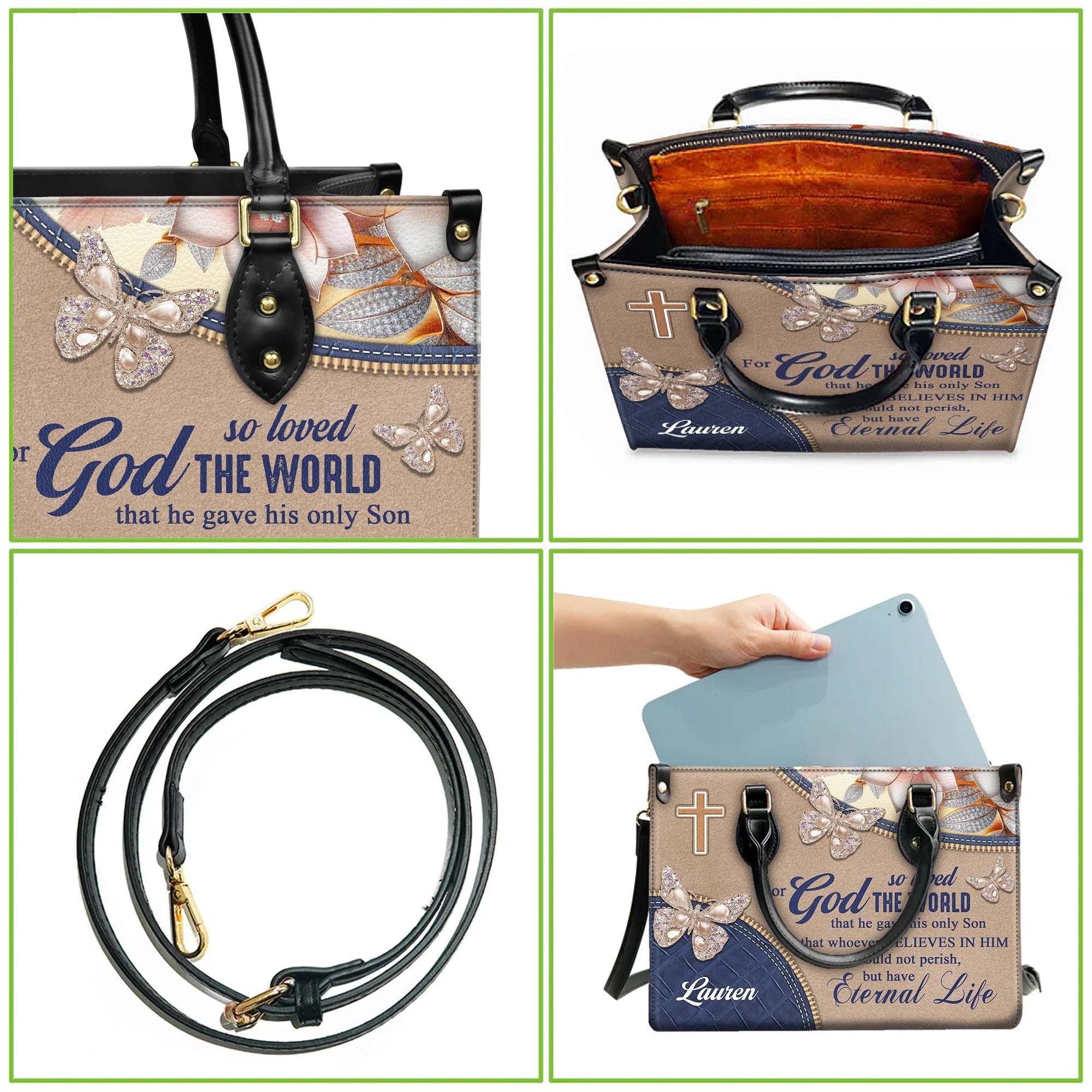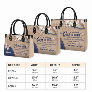 John 3:16 For God So Loved The World Eternal Life Personalized Christian Faith Leather Handbag