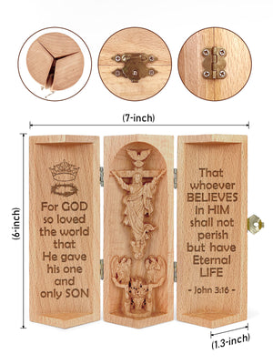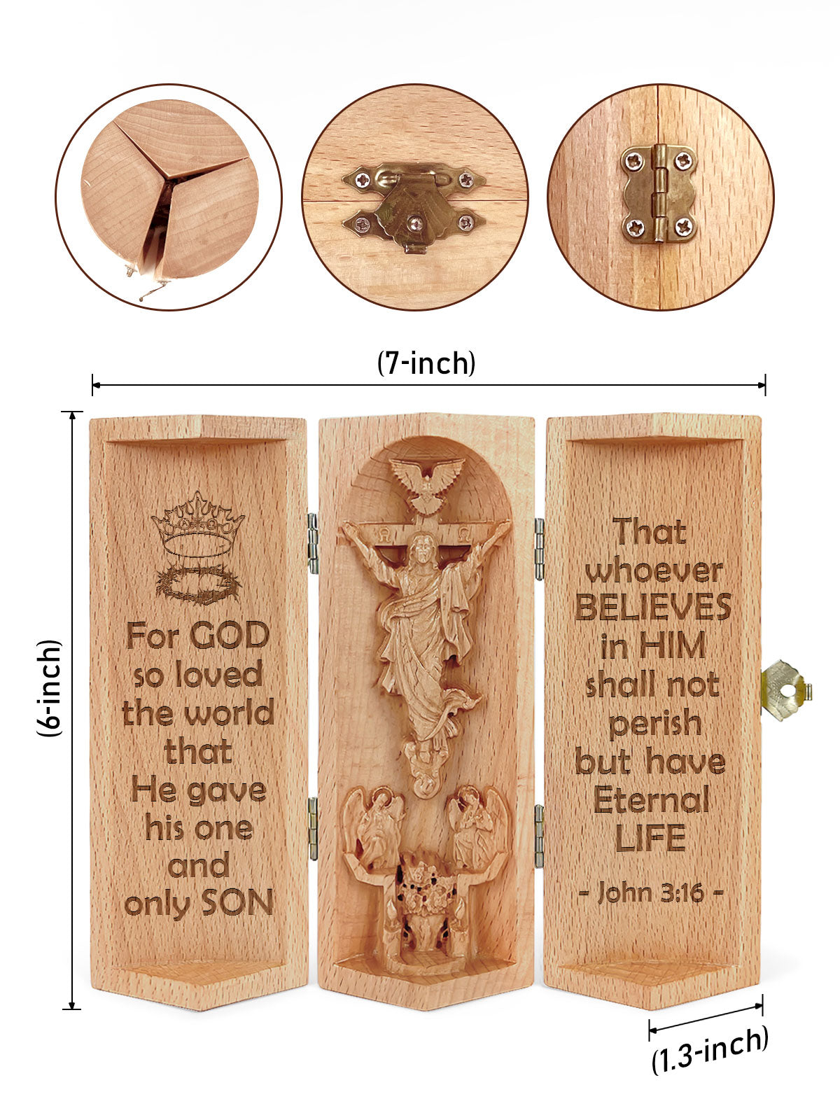 John 3:16, Openable Wooden Cylinder Sculpture of Jesus Christ, Christian Gifts