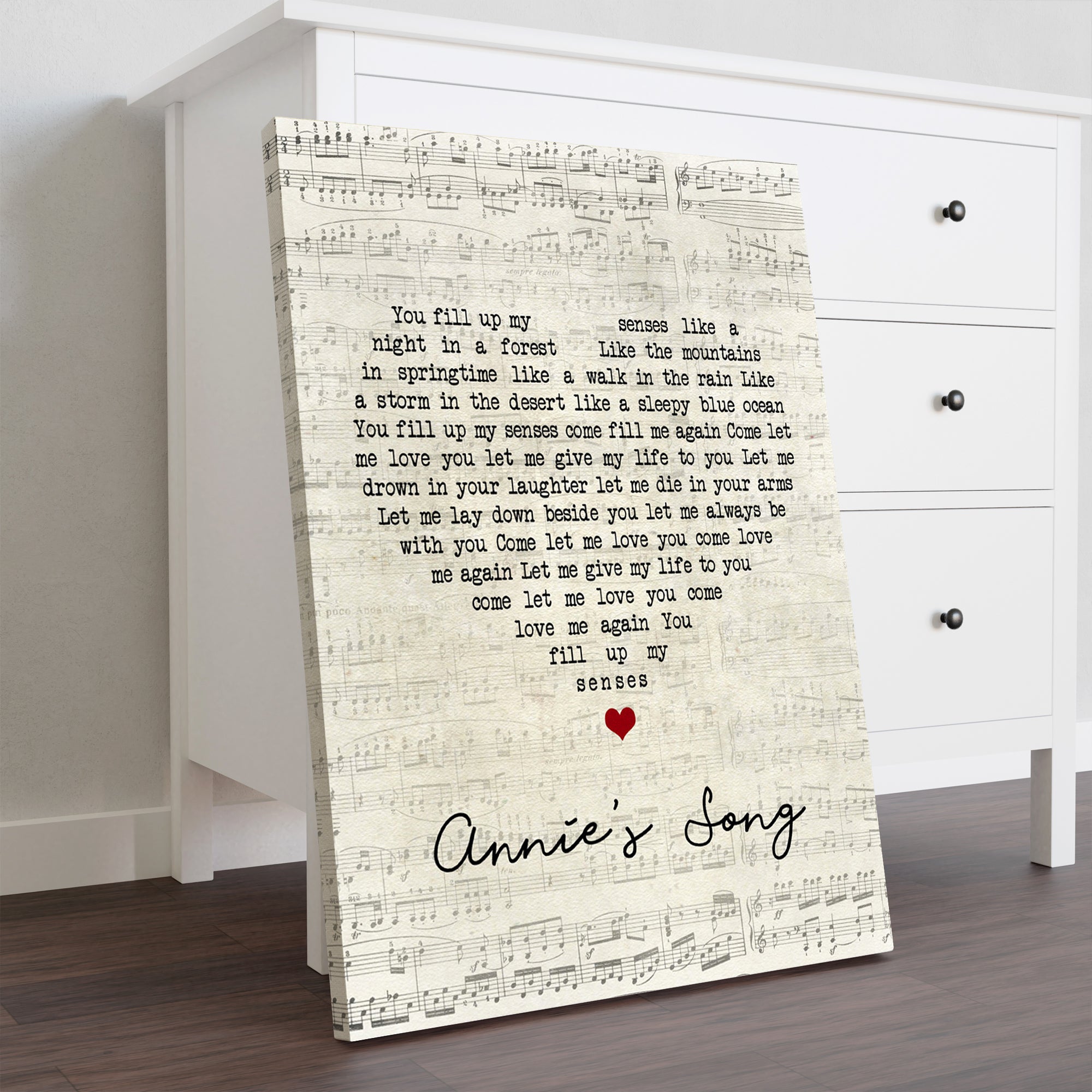 John Denver Annie's Song Script Heart Song Lyric Art Print Canvas Print Frames