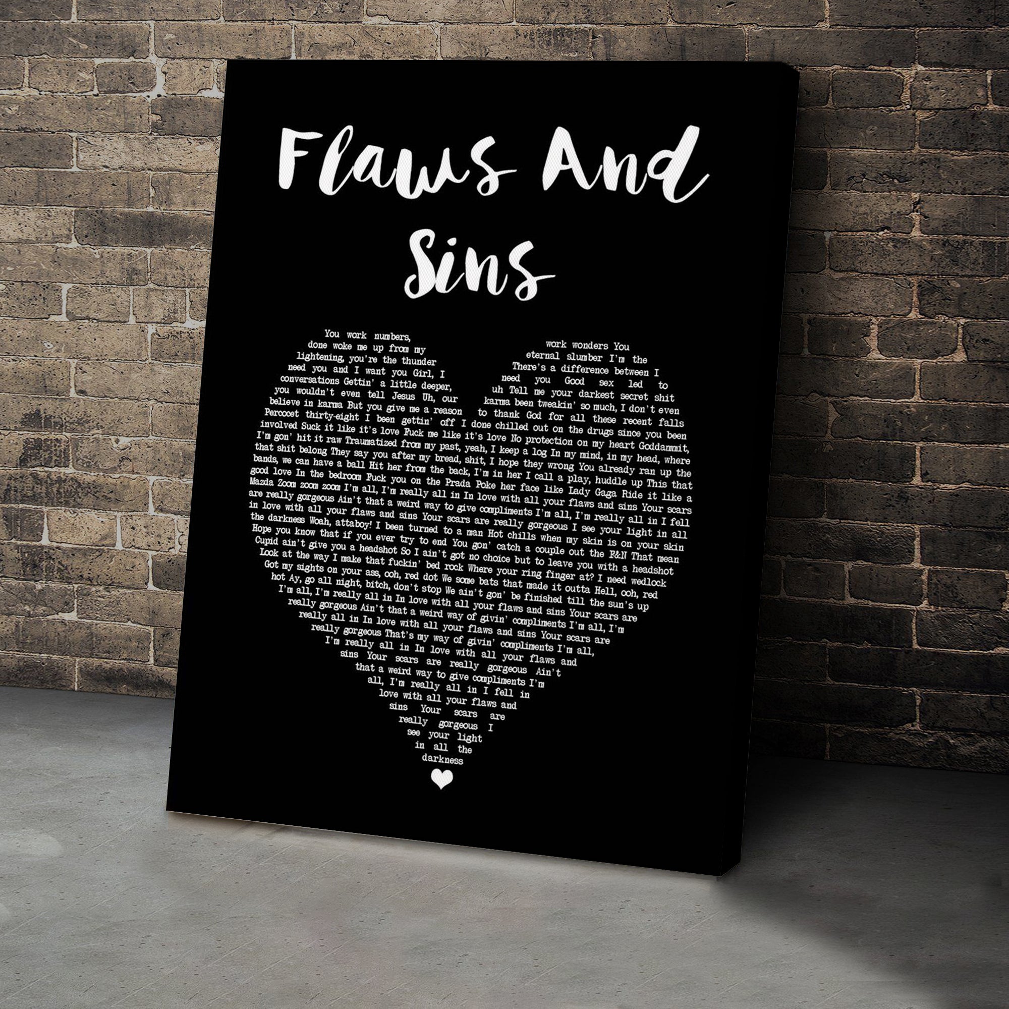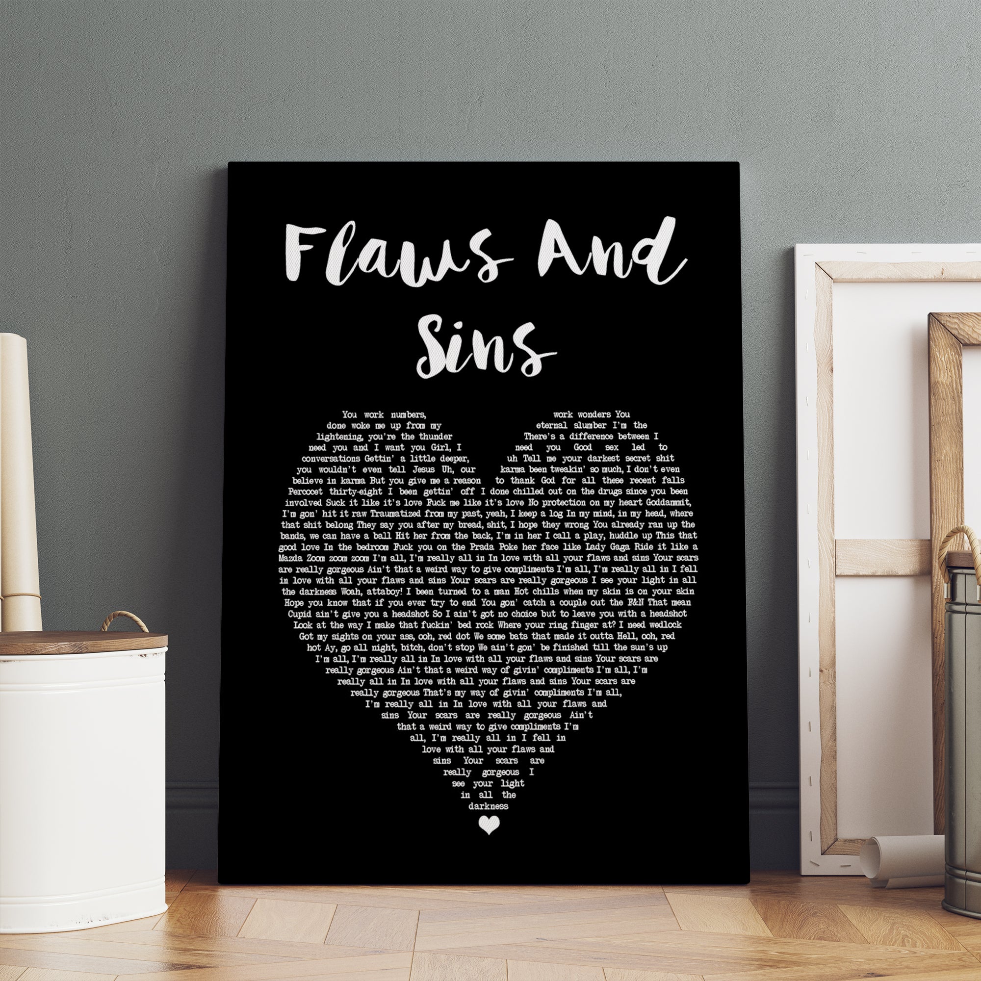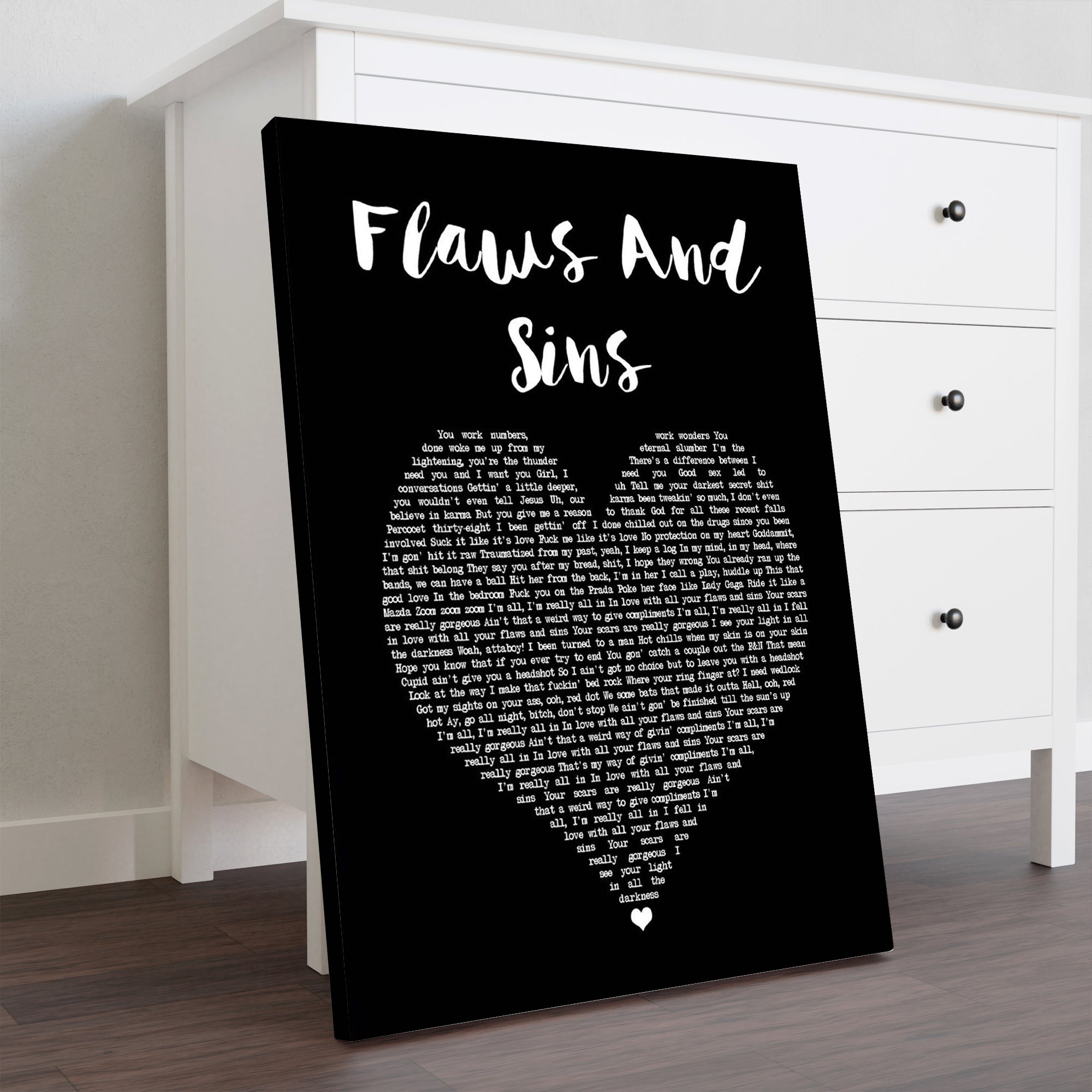 Juice WRLD Flaws And Sins Black Heart Song Lyric Print Canvas Print Frames