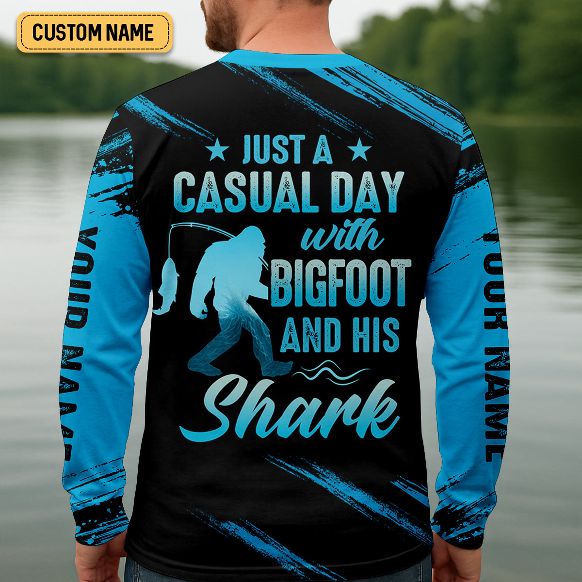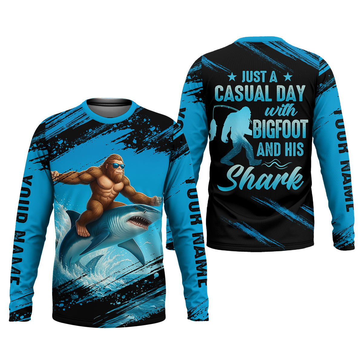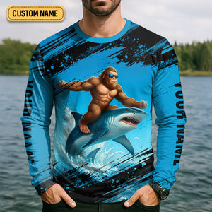 Just A Casual Day With Bigfoot And His Shark Fishing UPF Shirts, Funny Fishing Shirt, Presents For Fishermen