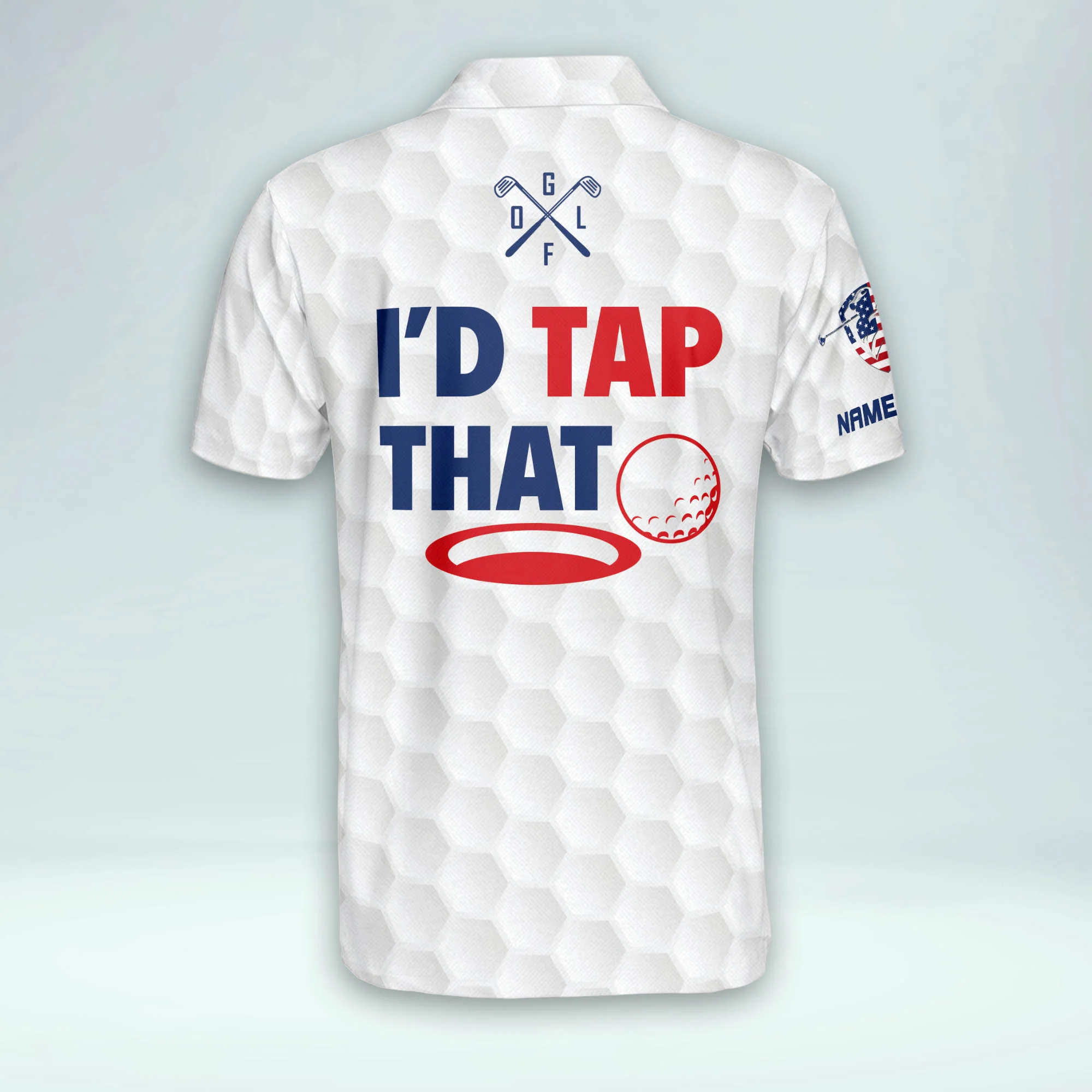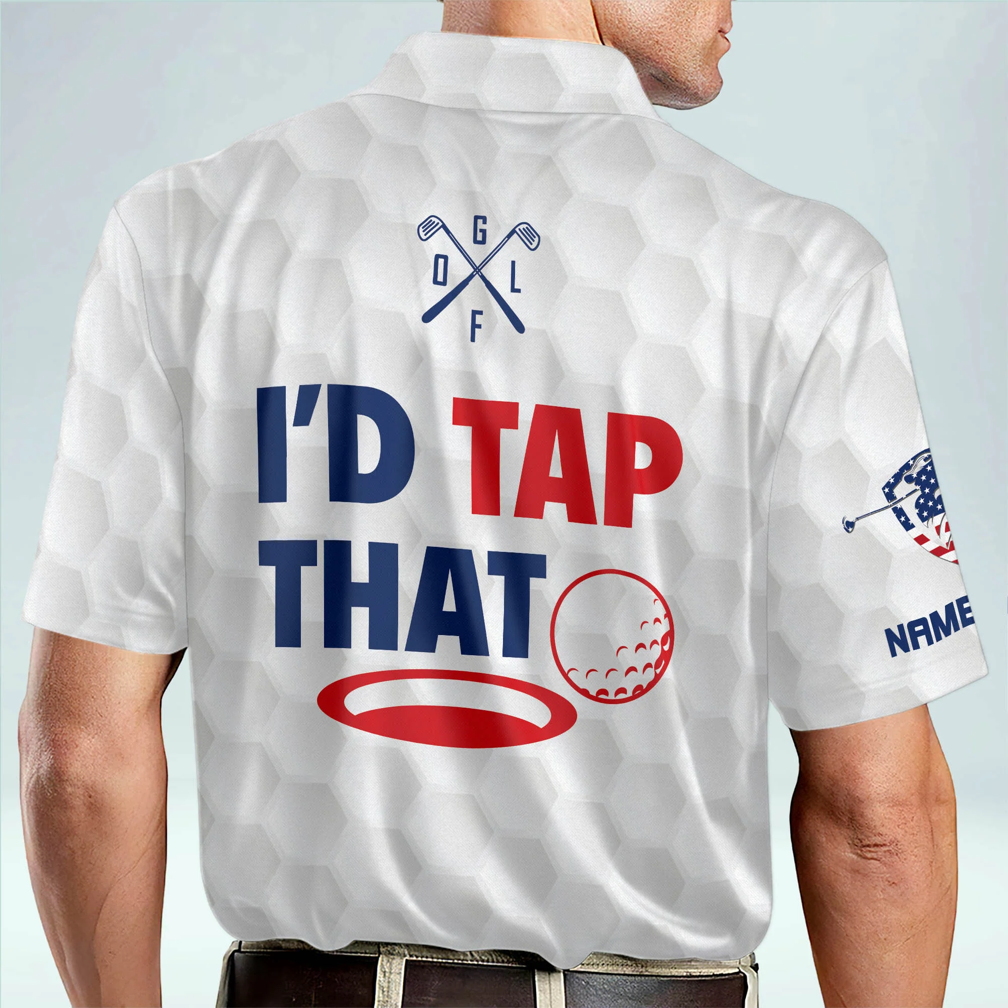 Just Tap It In American Flag Custom Name Golf Polo Shirts, Golf Gift For Men, Golfing Apparel