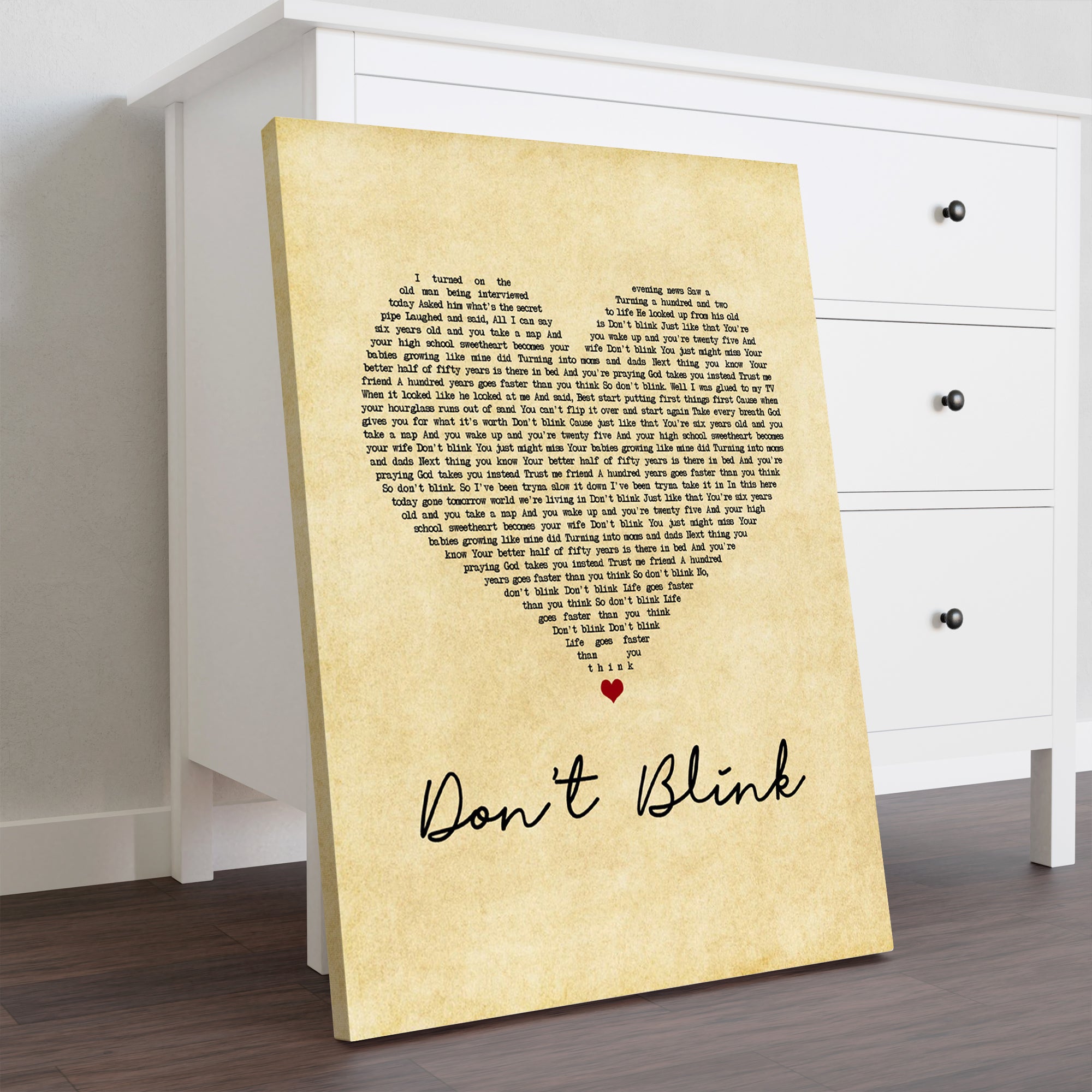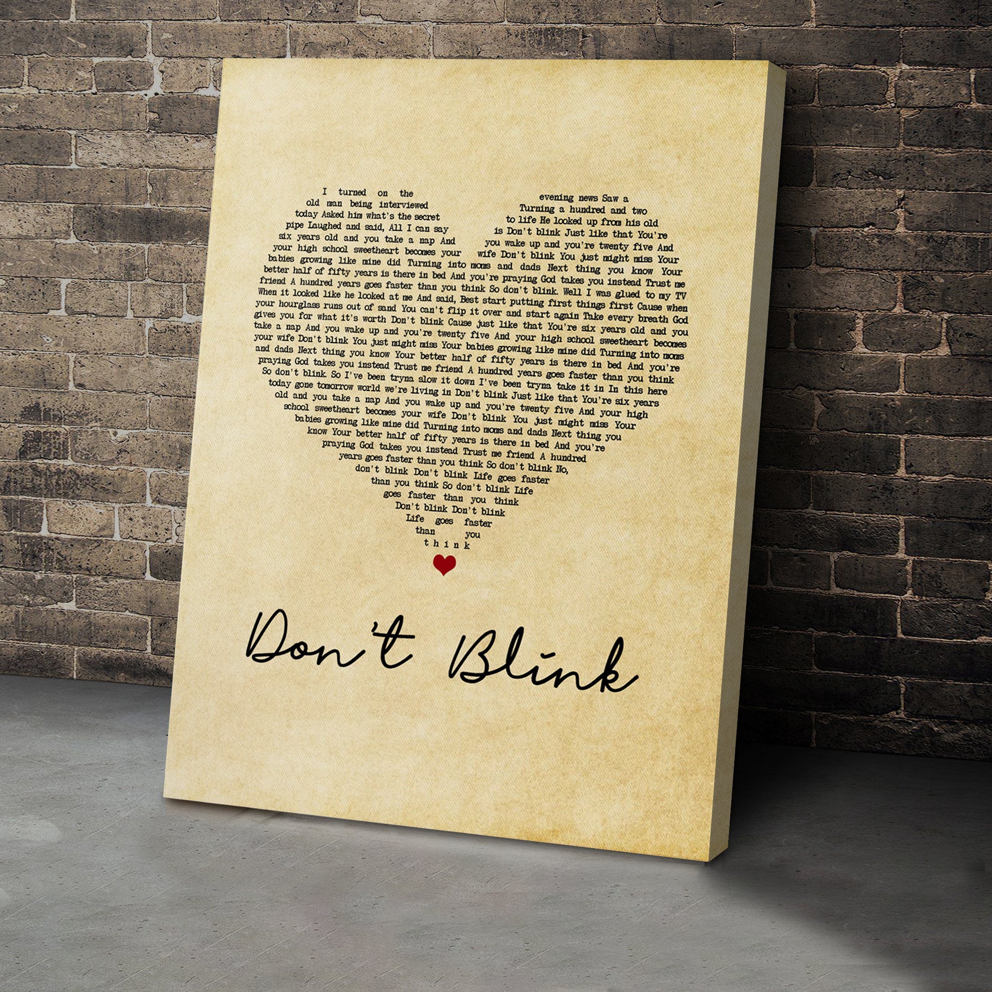 Kenny Chesney Don't Blink Vintage Heart Song Lyric Music Art Print Canvas Print Framesin