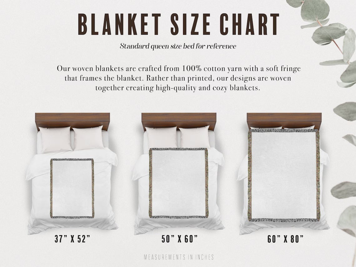 Multiple Size Options: Available in various sizes, this blanket can suit your needs whether you're lounging on the couch, cozying up in bed, or using it as a decorative throw.