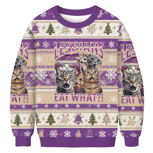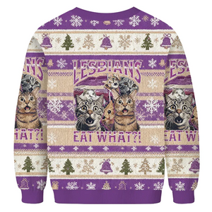 Lesbians Eat What Fun Cats Purple Vintage Christmas Sweater, Ugly Xmas Sweater, Christmas Ugly Sweatshirt