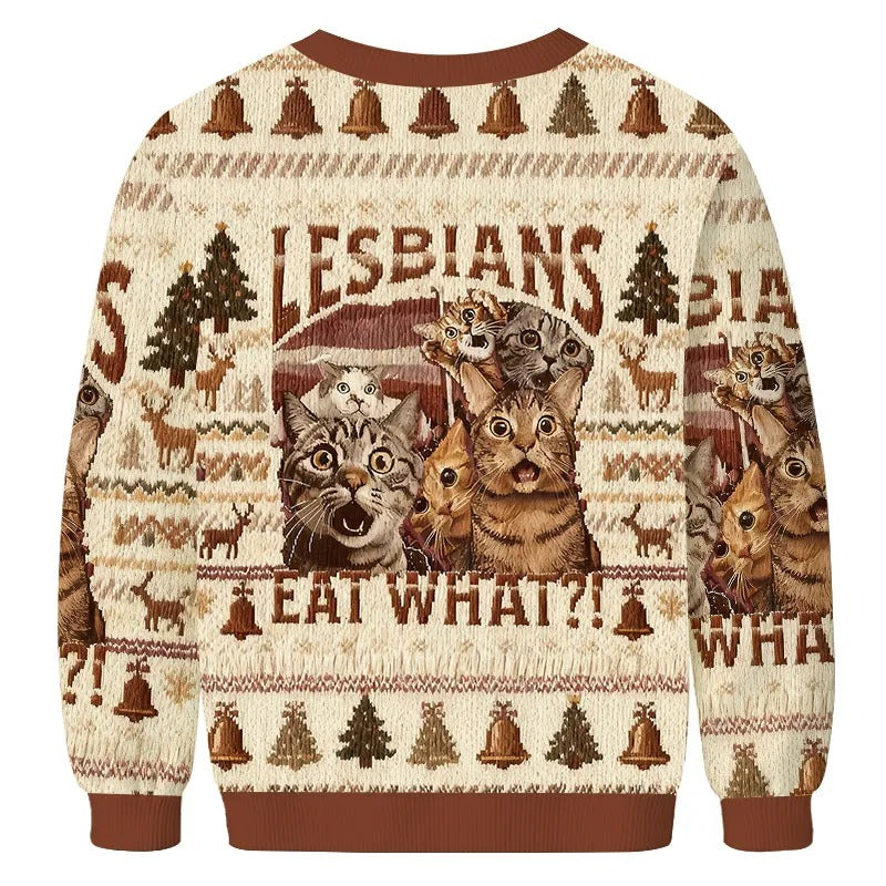 Lesbians Eat What Ugly Sweater, Gift Ideas For Cat Lovers, Christmas Ugly Sweatshirt