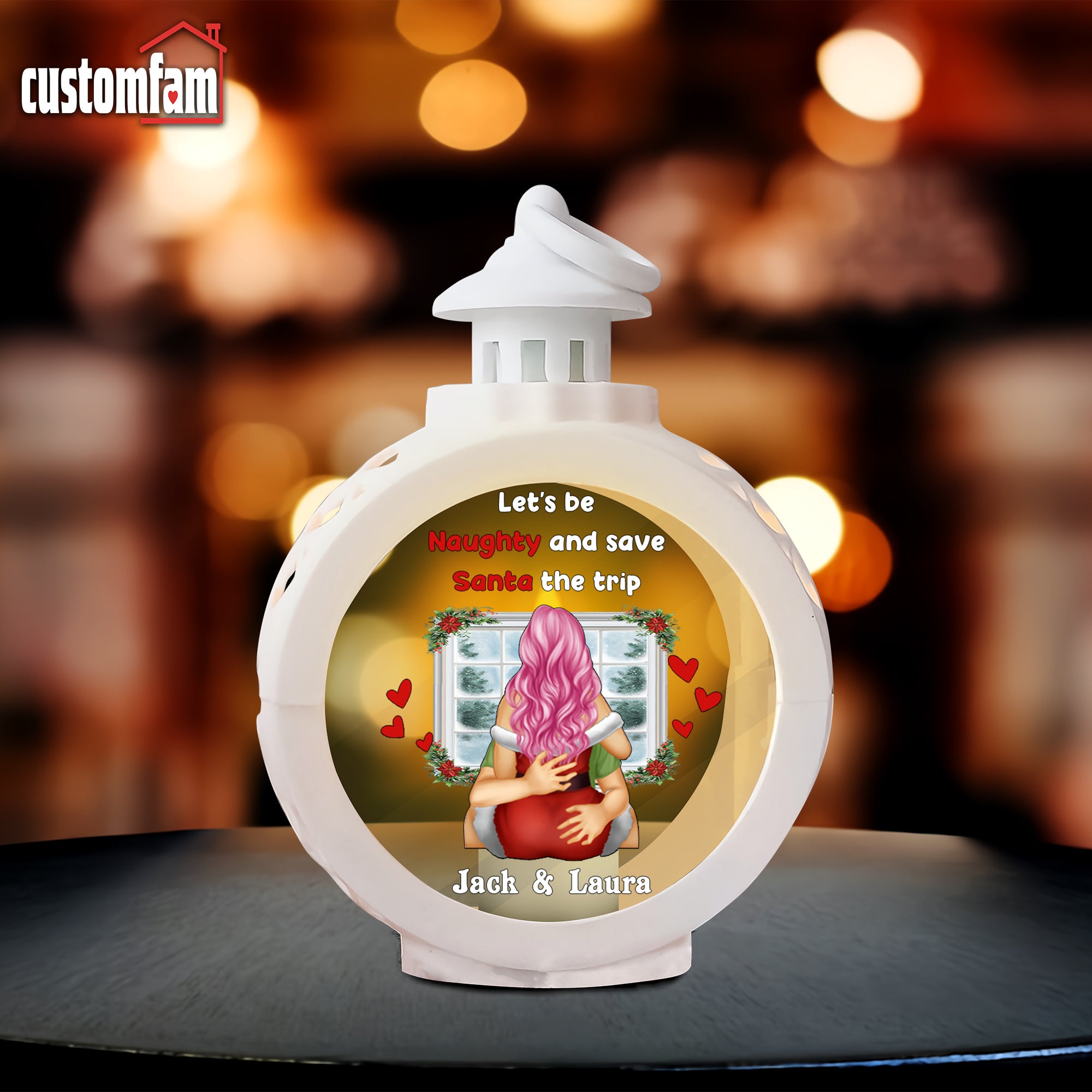 Let's Be Naughty And Save Santa The Trip Christmas Lantern Ornament, Gift For Couples