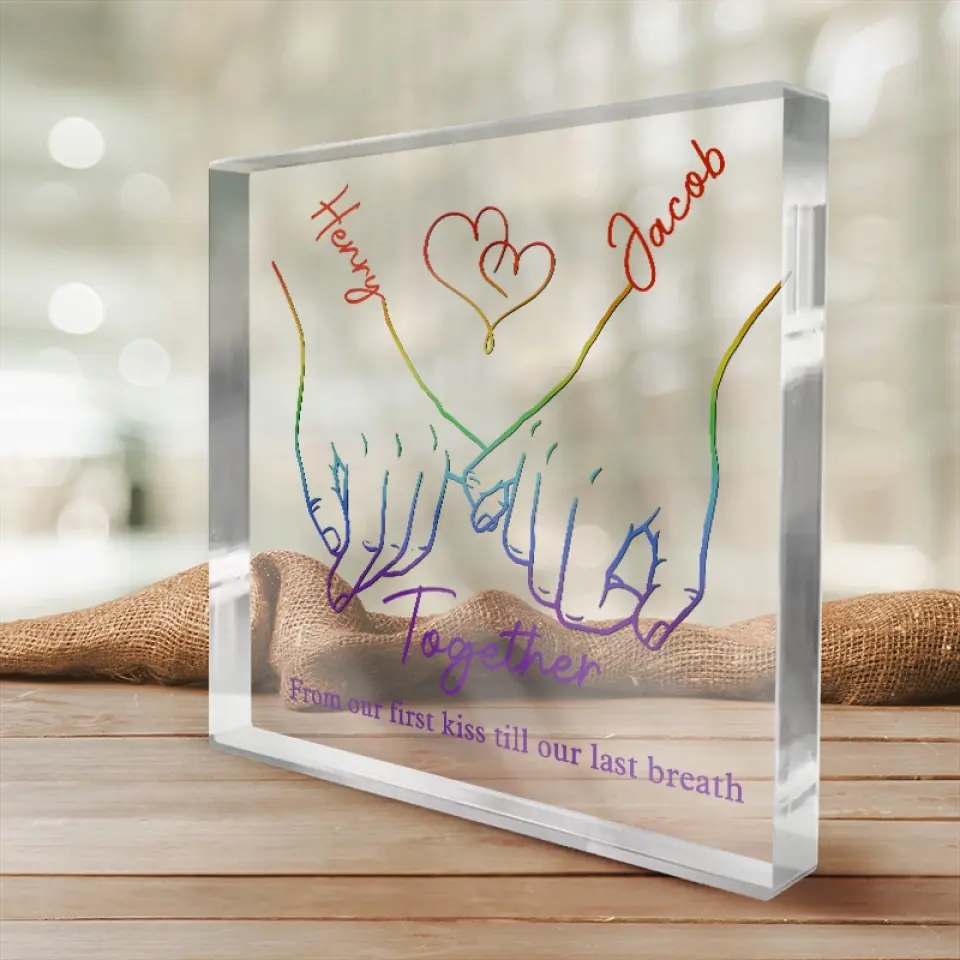 LGBTQ+ Couple Holding Hand Acrylic Plaque, LGBTQ+ Gift, Couple Valentine Gift, Personalized Gift For Couple