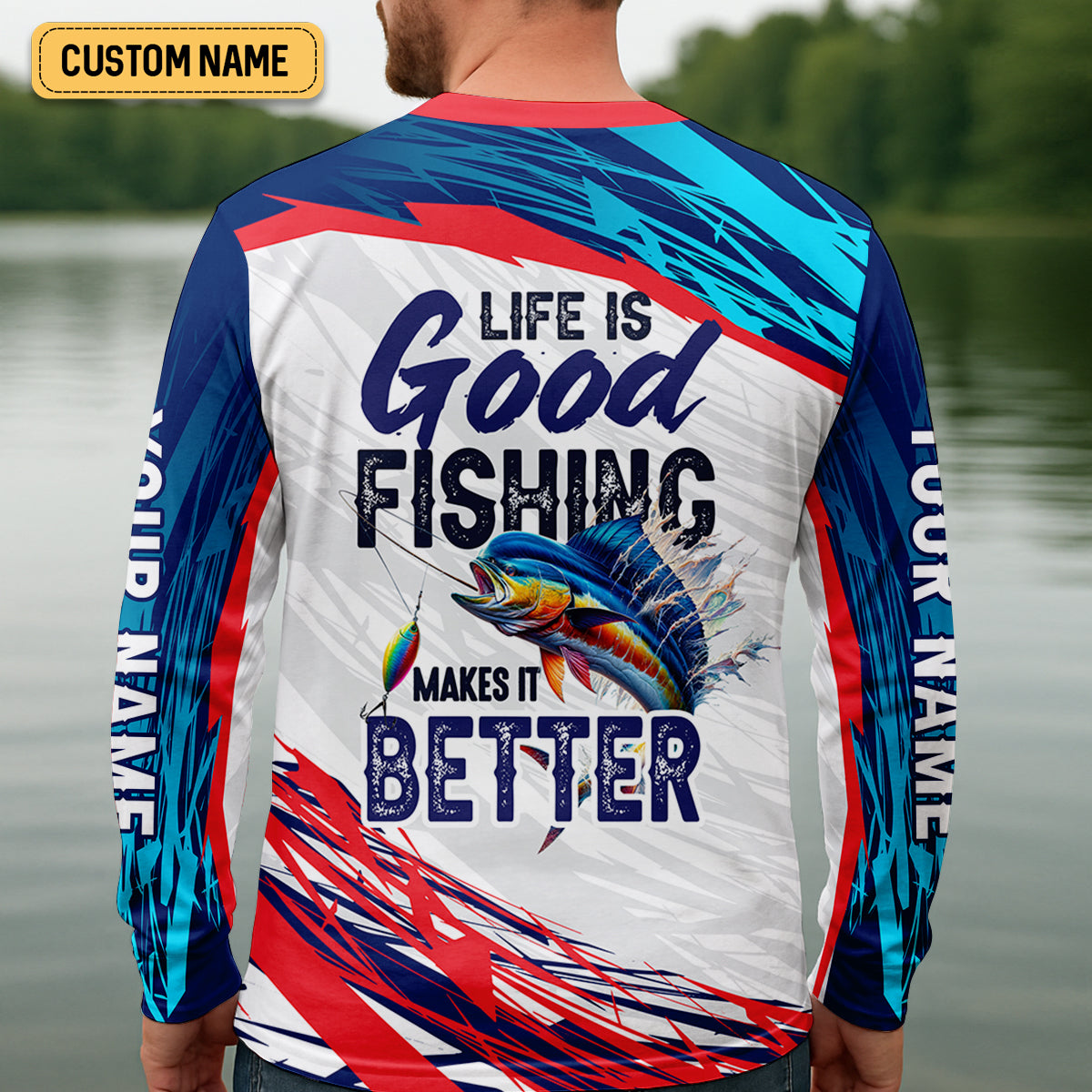 Life Is Good Fishing Makes It Better SPF Shirts, Fishing Shirts For Men, Funny Fisherman Gift