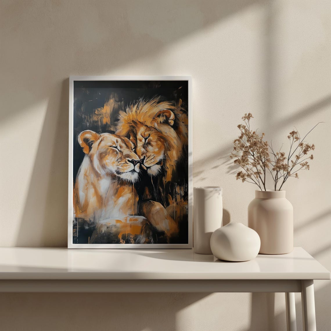 Celebrate your unbreakable bond with the Lion and Lioness Canvas Wall Artβa stunning and symbolic piece of couple wall decor. Featuring a powerful and elegant depiction of a lion and lioness, this artwork represents strength, loyalty, and the beauty of togetherness. Perfect for any couple, this canvas is an ideal gift for anniversaries, Valentine's Day, or any special occasion. The intricate design and high-quality print bring a bold, timeless statement to your home, making it a meaningful addition to your living room, bedroom, or any space where love is celebrated.