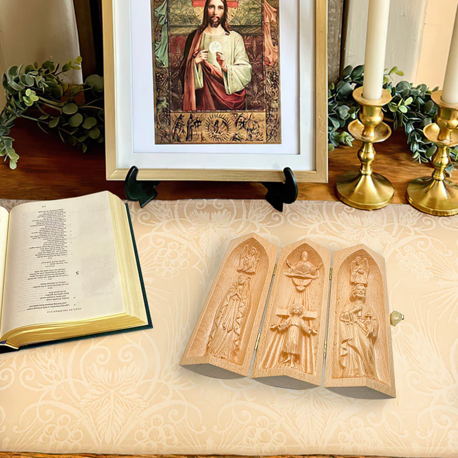 Virgin Mary, Infant Jesus And Saint Joseph Openable Wooden Cylinder Sculpture Of Jesus Christ, Christian Merchandise, Christian Gifts