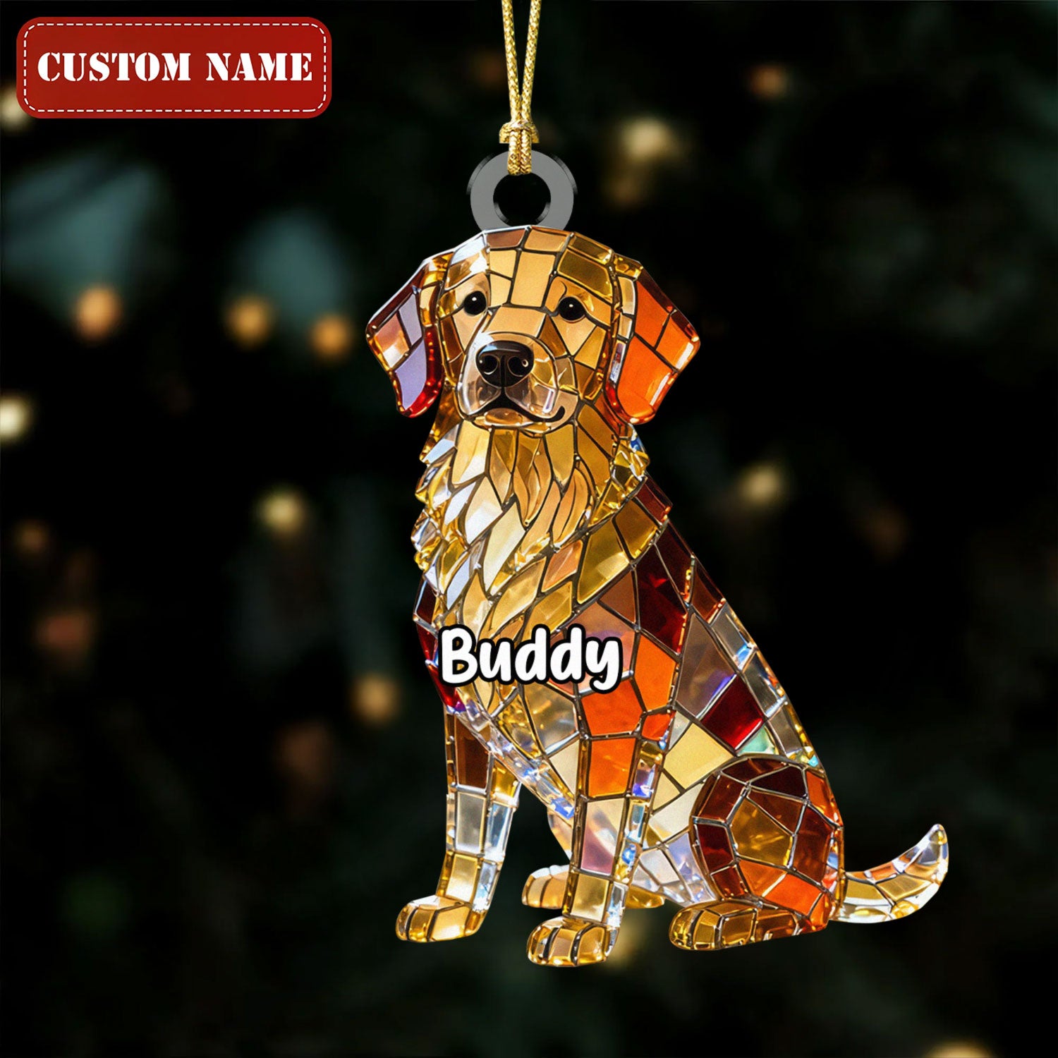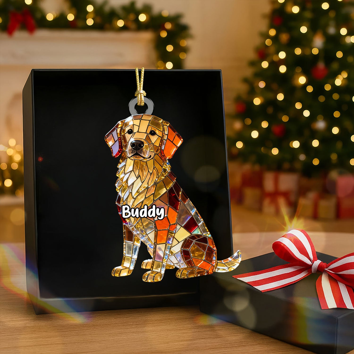 Lovely Dog Stained Glass Crystal Effect Acrylic Ornament, Gifts For Dog Lovers, Pet Christmas Ornaments