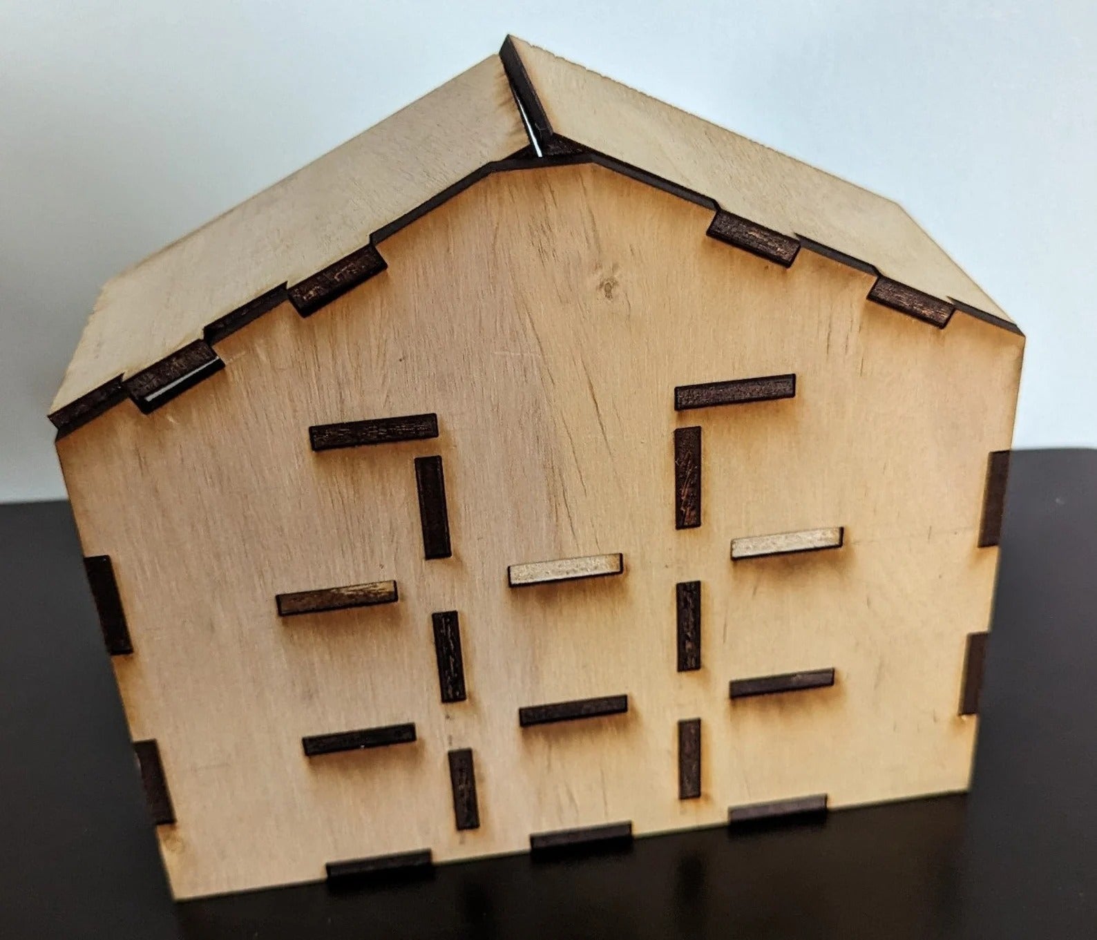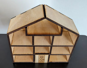 1. Option 1 - Raw (Unpainted, Laser-Cut Only): A precisely cut wooden house frame, left unpainted for you to customize and decorate in your unique style. This option is perfect for DIY enthusiasts who want to add their own colors and designs.
