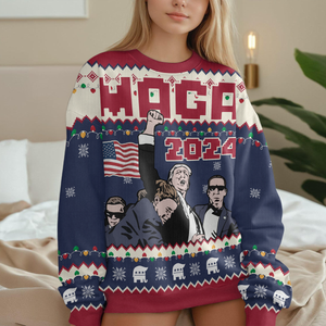Get ready to turn heads and spark conversations at your next holiday gathering with the MAGA Trump 2024 Ugly Sweater! This bold and humorous design features a festive twist on your favorite political figure, combining classic Christmas cheer with a touch of patriotic humor.
