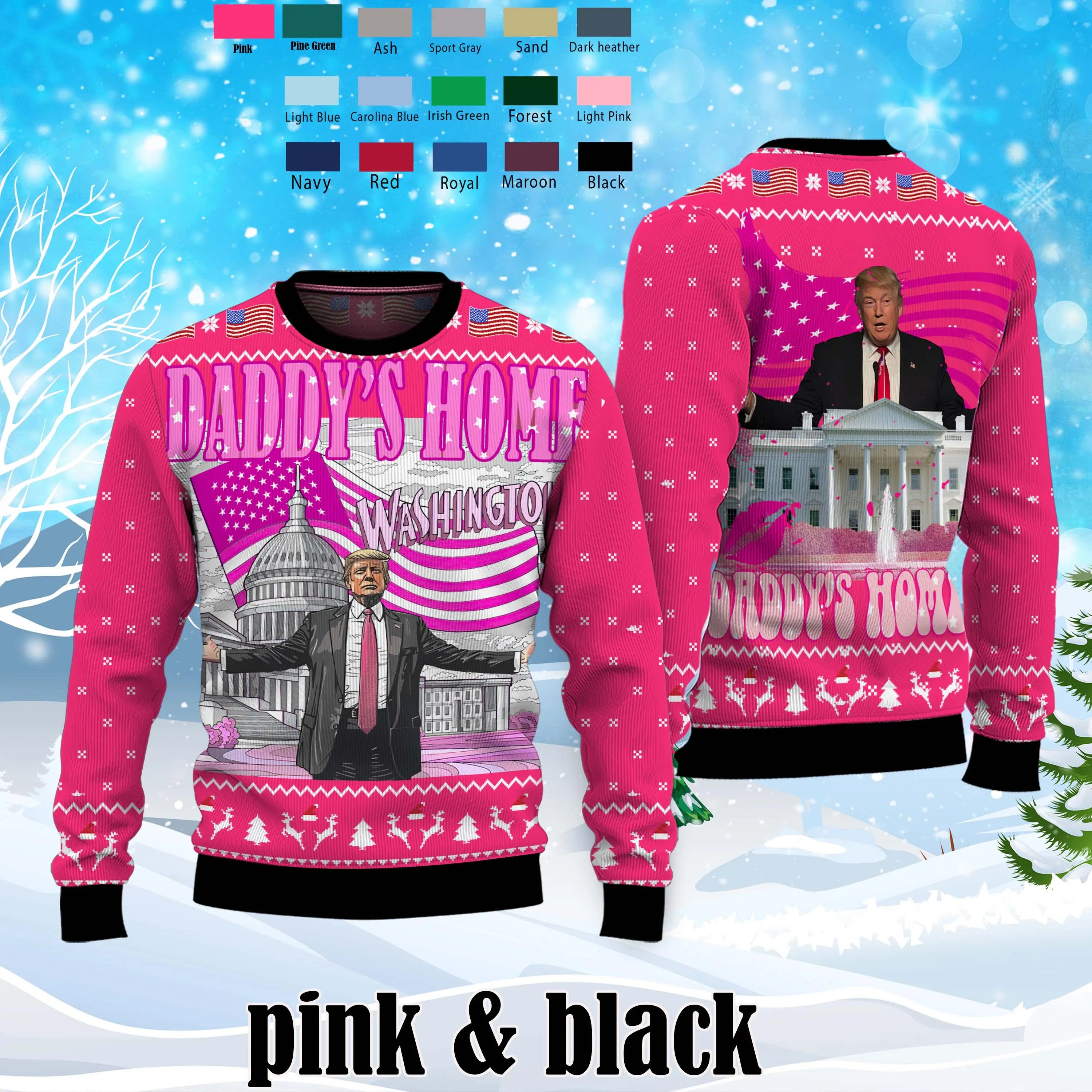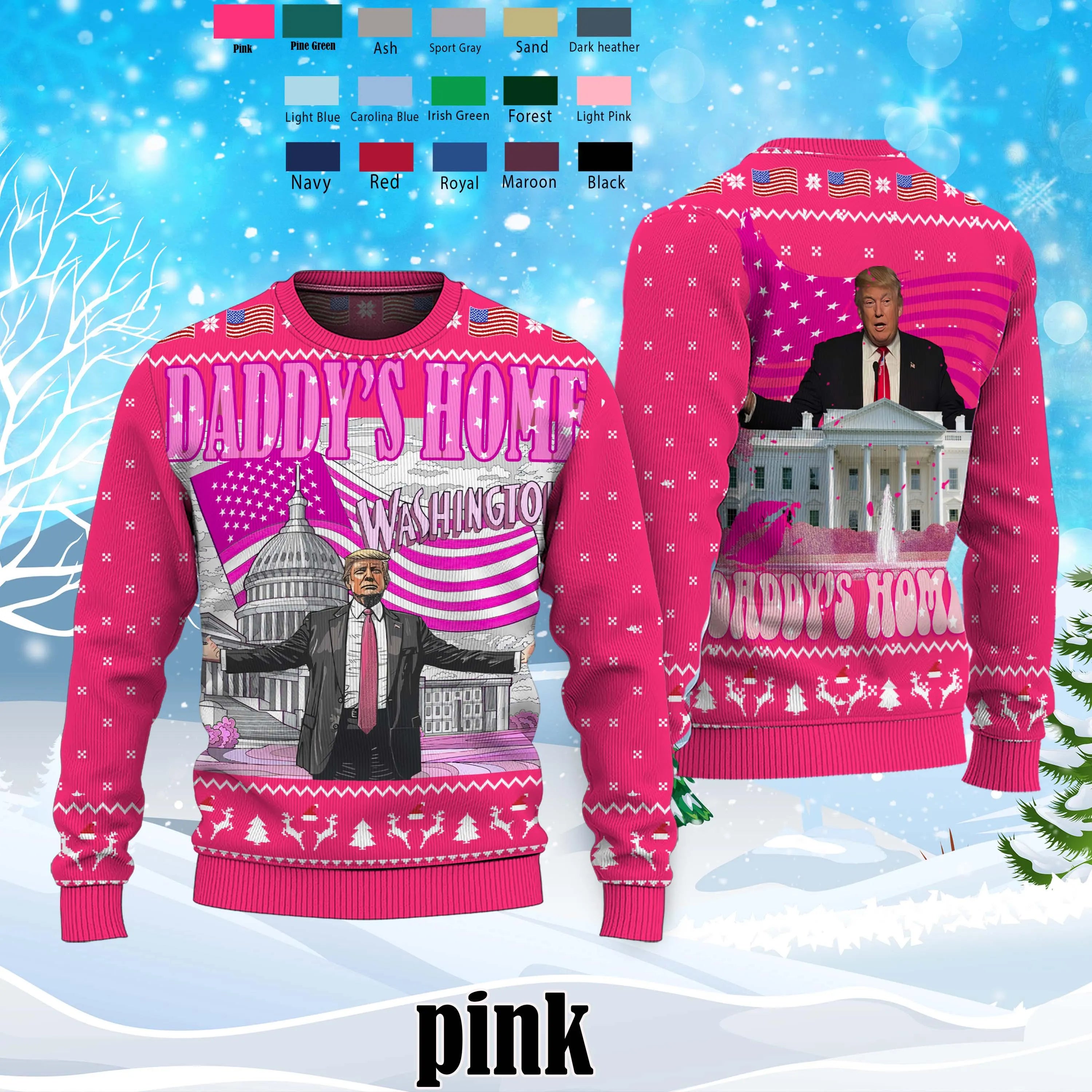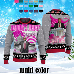 Daddy Home White House Pink Trump2024, Xmas Sweater, Vintage Christmas
