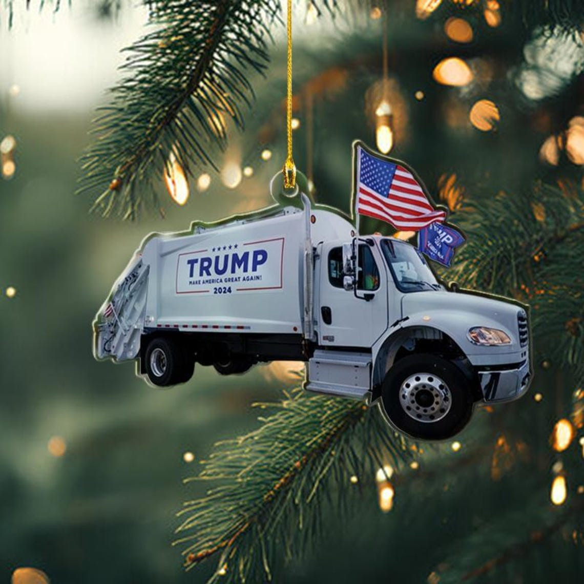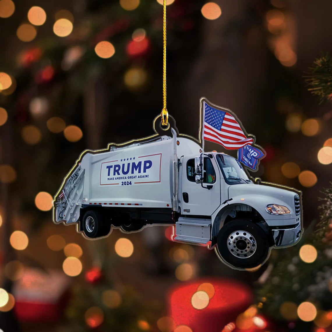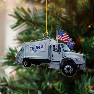 MakeAmericanGreatAgain, Trump2024 Garbage Truck, Unique Political Acrylic Ornament, Christmas Decor