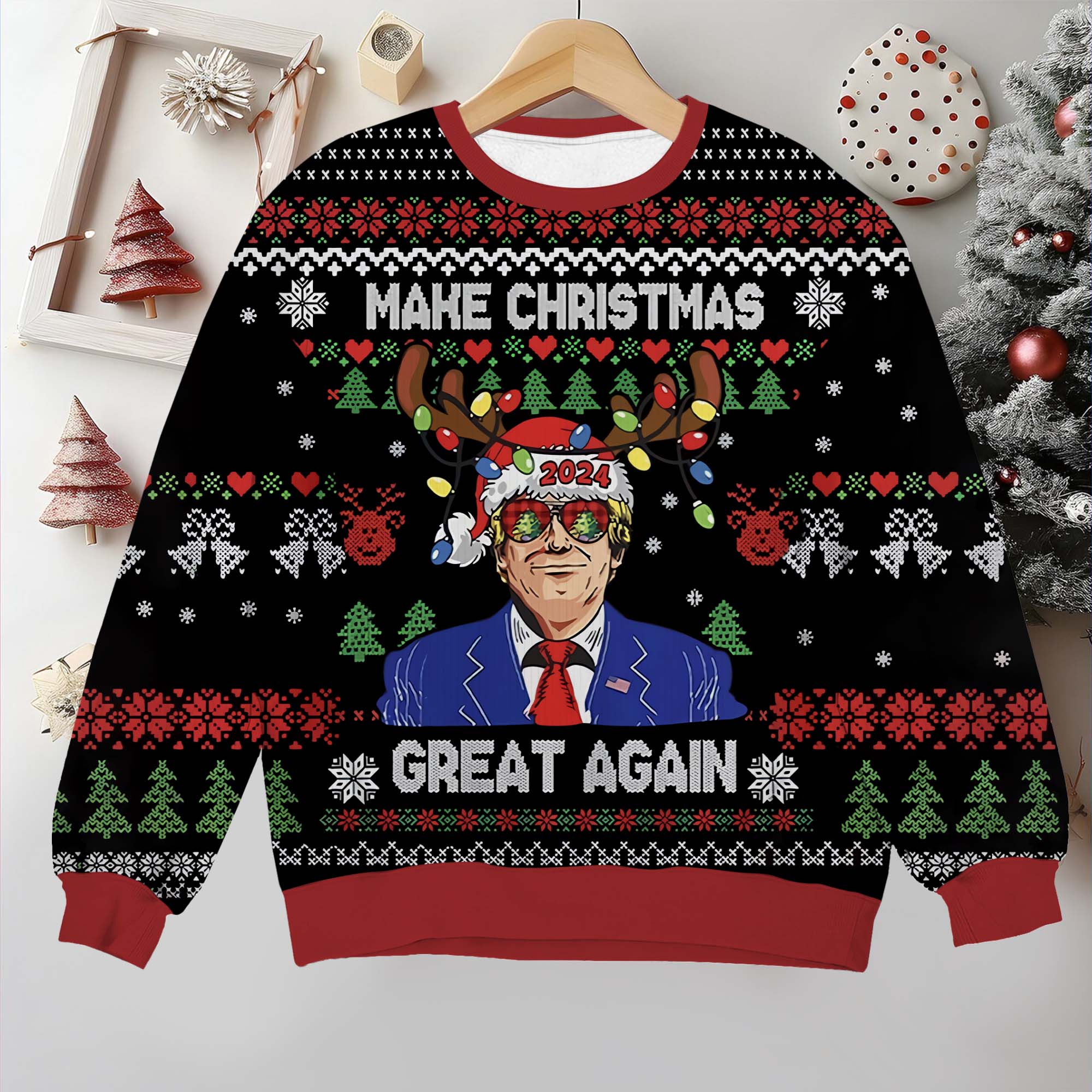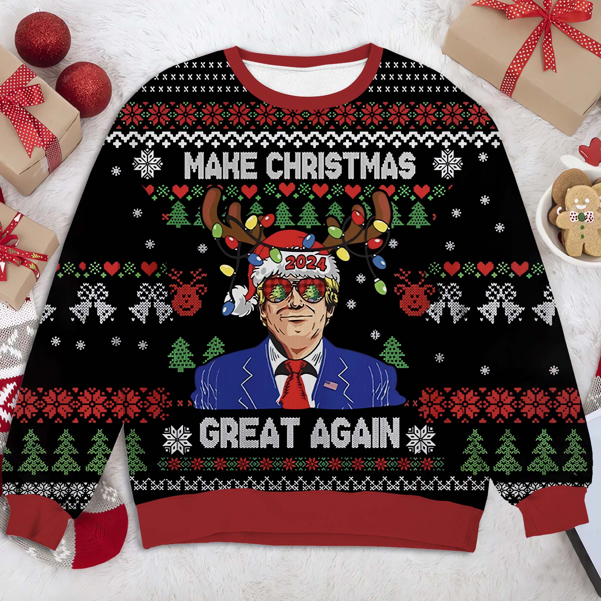 Make Christmas Great Again Trump2024 Funny Christmas Ugly Sweater, Funny Political Shirts