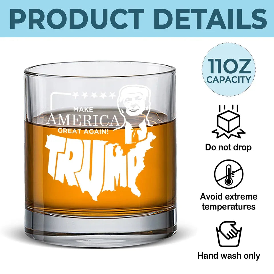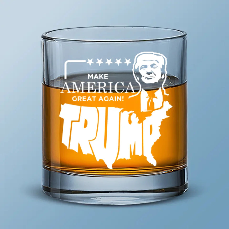 Making America Great Again Whiskey Glass, Trump2024 USA Map Glassware, Cool Gifts For Dad