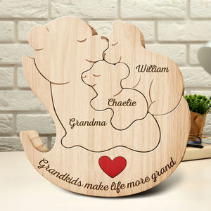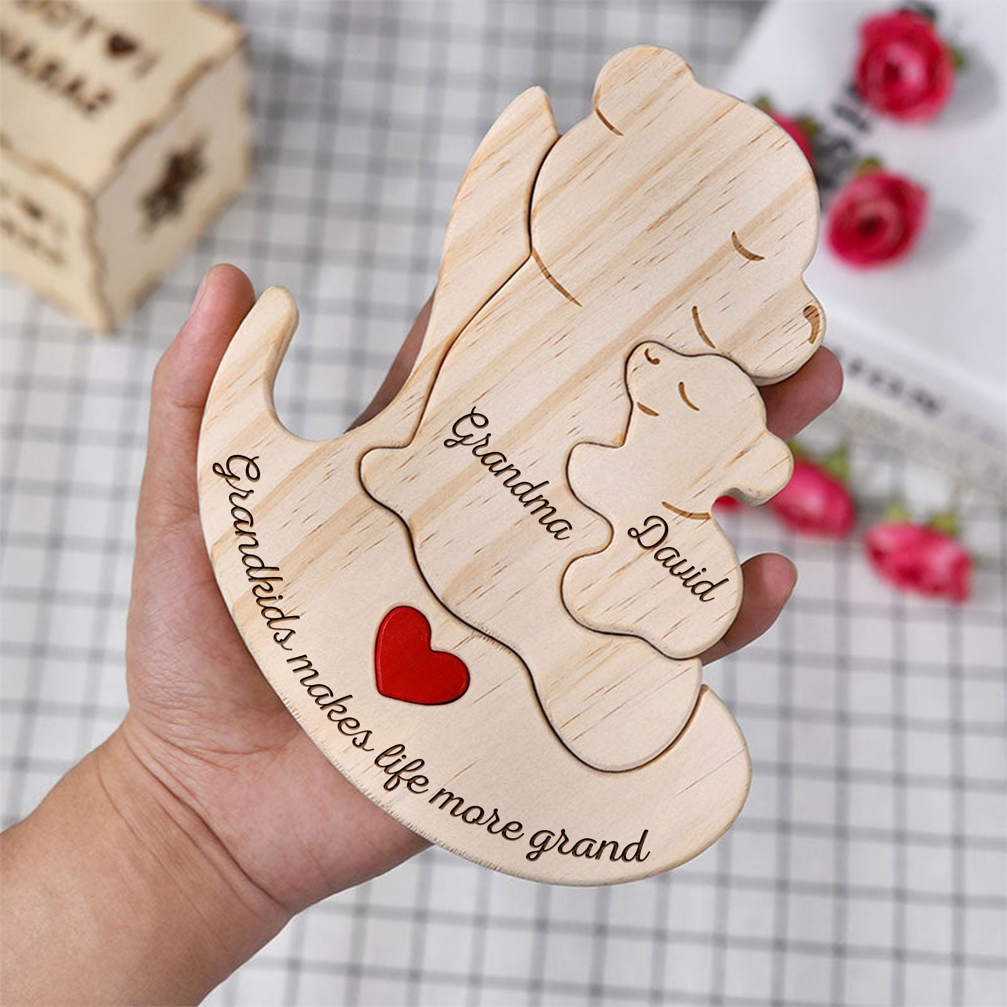 Mama Bear Personalized Shaped Wooden Puzzle, Gift For Grandma