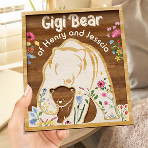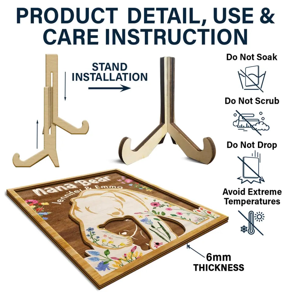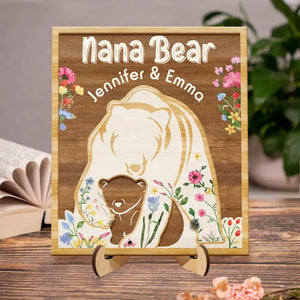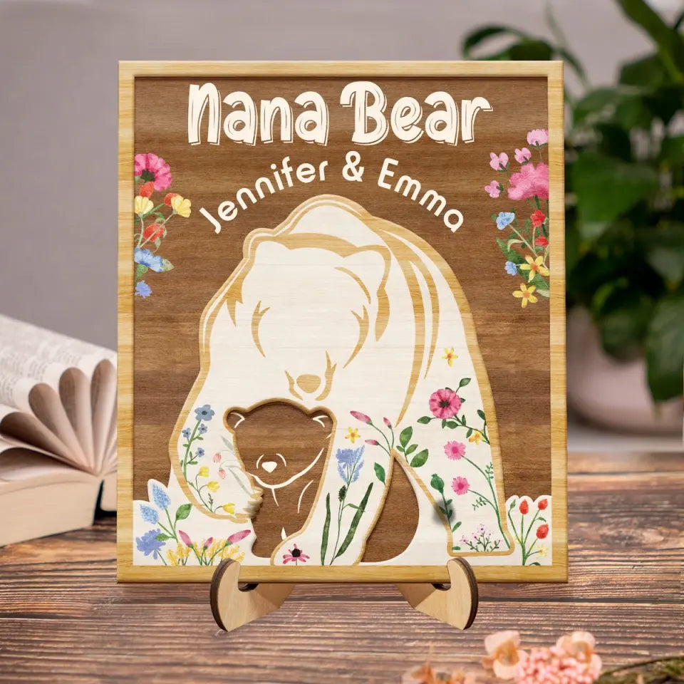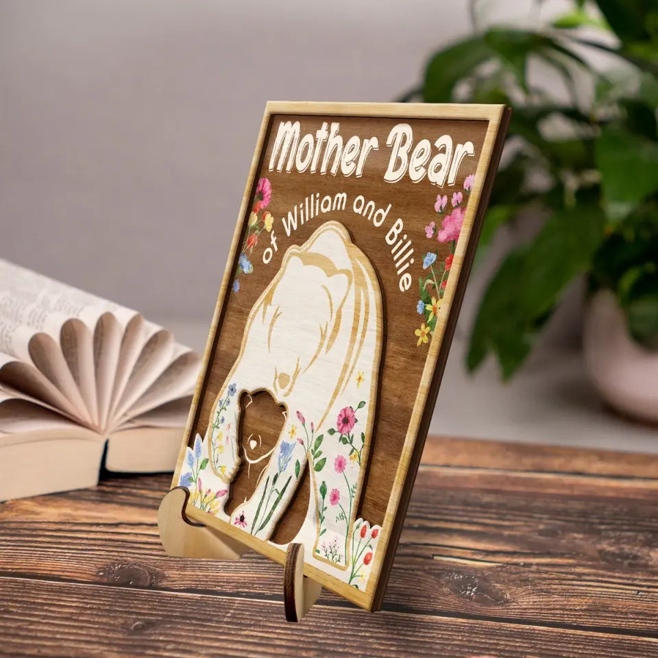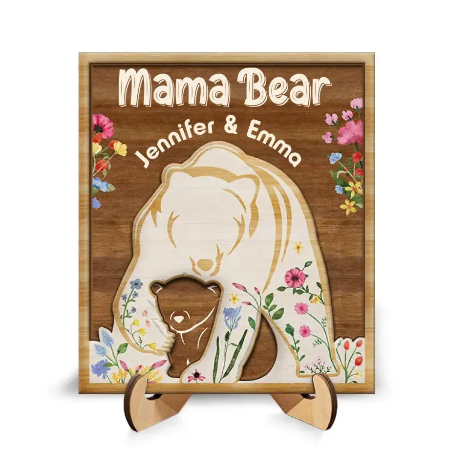 Mama Bear Protects Baby Personalized 2-Layered Wooden Plaque With Stand, Gift For Mom