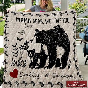 Mama Bear We Love You Custom Woven Blankets, Mother's Day Gift, Gift For Mom