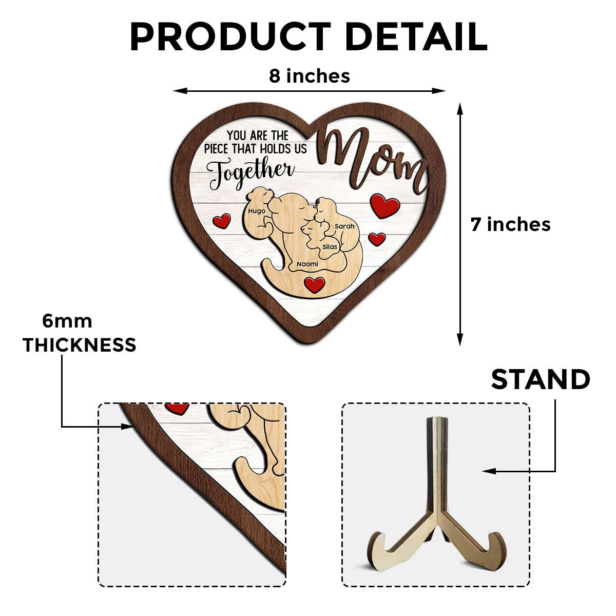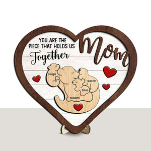 Capture the essence of your family bond with Personalized Heart-Shaped Wooden Sign Custom Names with 3D Bear Family Design that beautifully illustrates how mom brings everyone together. Customize with each family member's name on the charming bear family puzzle piece, creating a truly unique tribute to the woman who holds your family's heart.