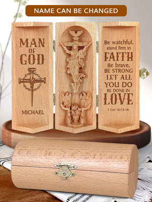 Man Of God, Personalize Openable Wooden Cylinder Sculpture of Jesus Christ, Christian Gifts