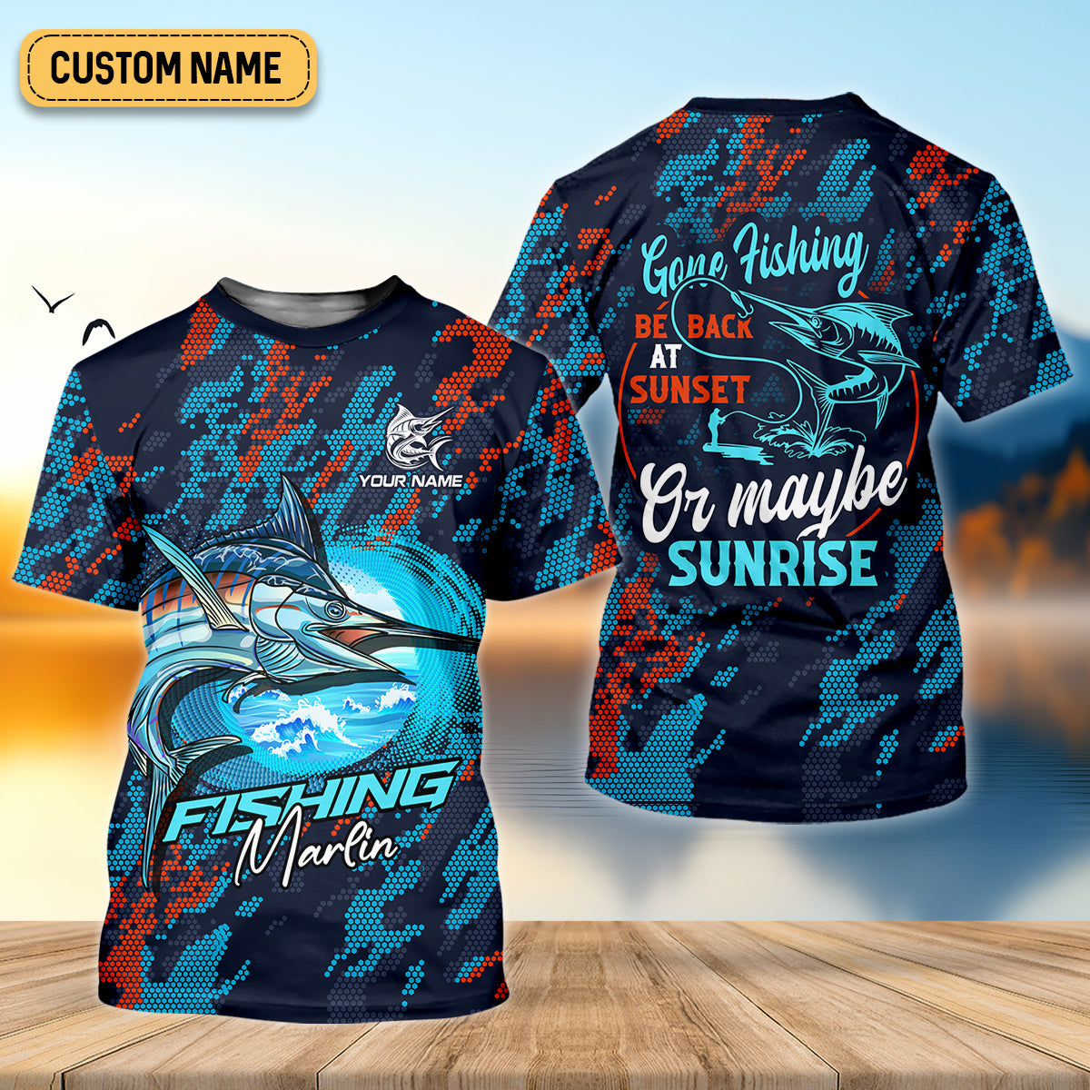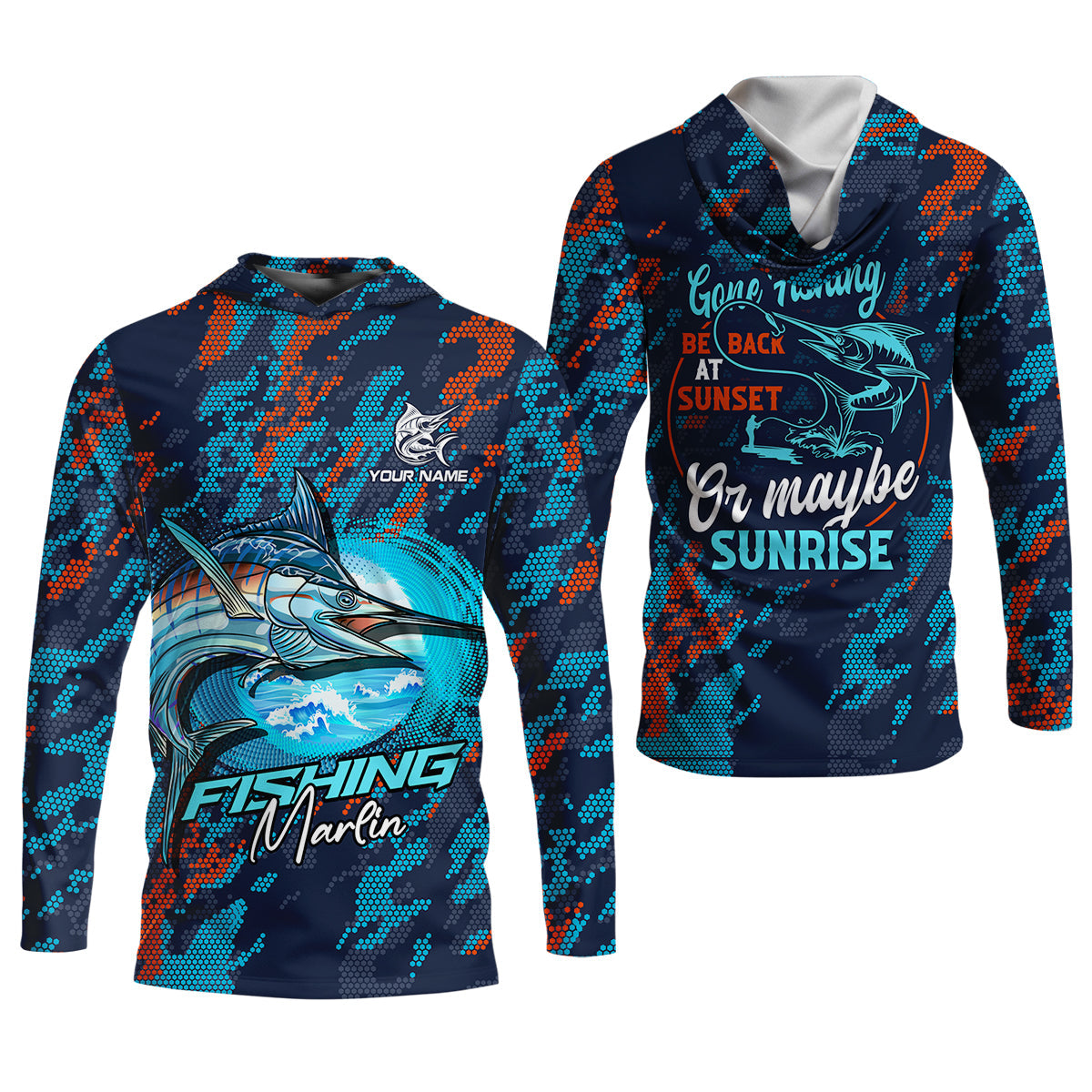 Marlin Fishing SPF Shirts, Gone Fishing Be Back At Sunset Or Maybe Sunrise Shirts For Men, Funny Fisherman Gift